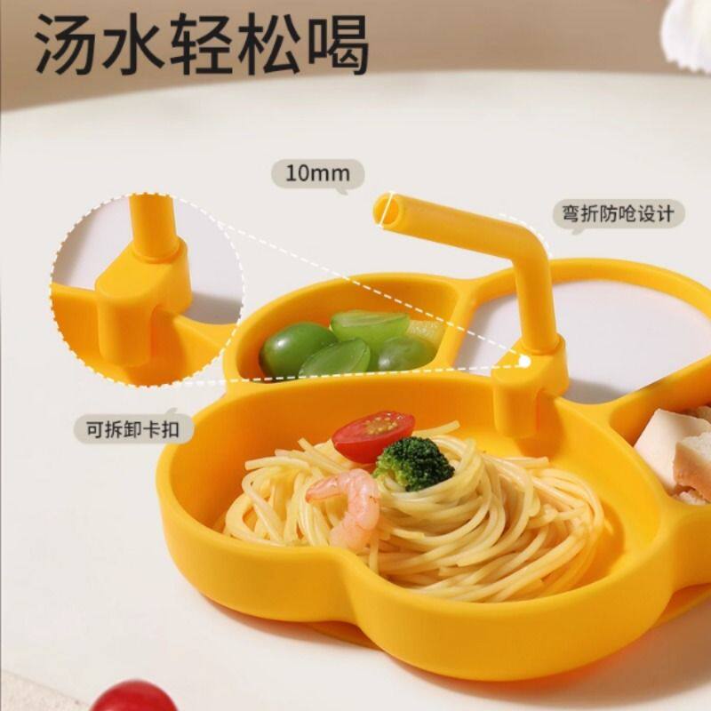 宝宝餐盘吸盘分格盘婴儿硅胶吸管辅食吃饭勺子儿童餐具餐椅分隔式