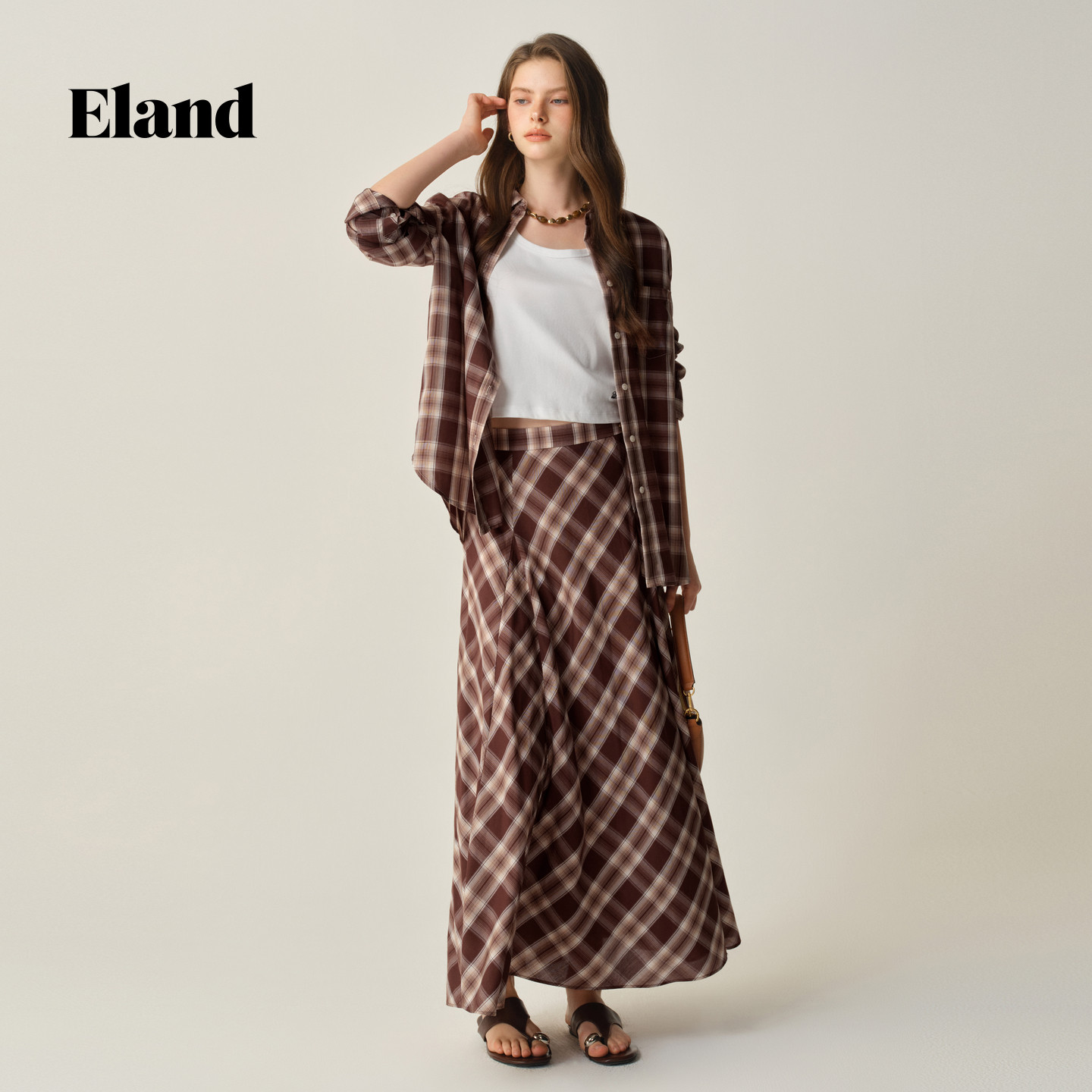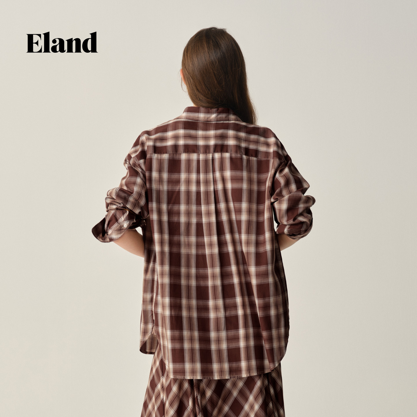 【100%莱赛尔】Eland衣恋衬衫女长袖格纹休闲上衣2025秋季新款