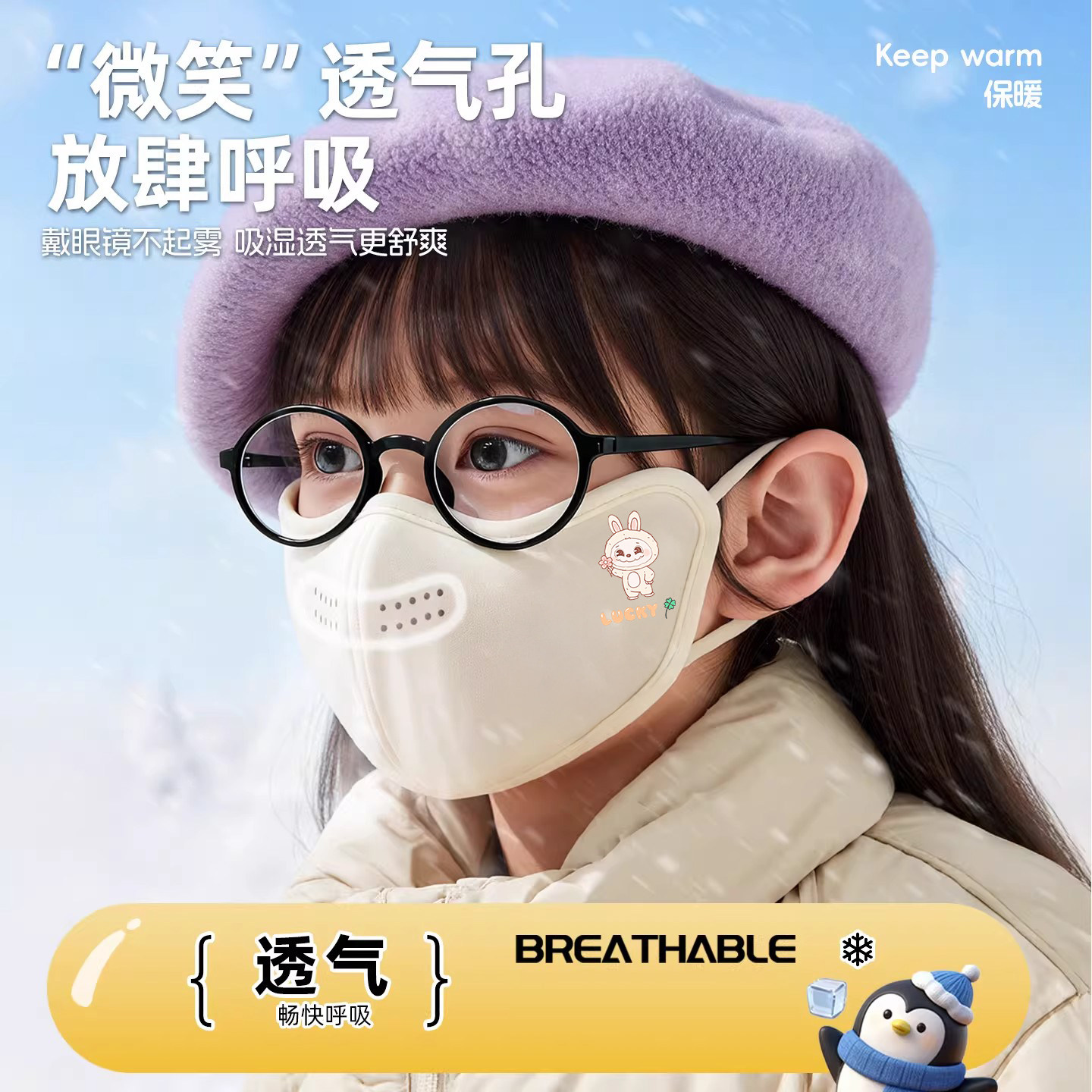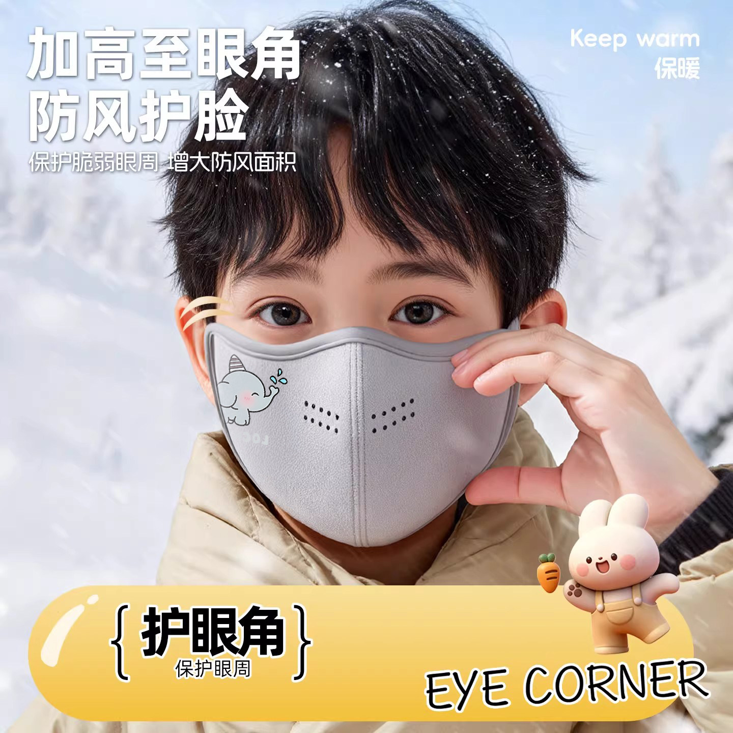 保暖口罩儿童3到6岁男童冬季防风防寒小孩上学专用宝宝面罩可调节
