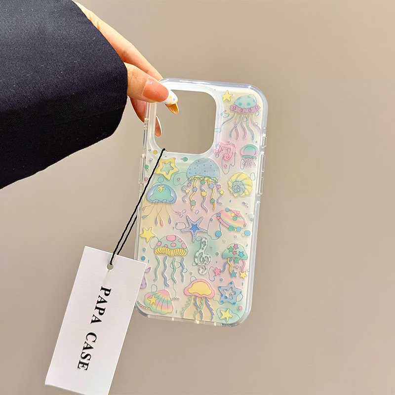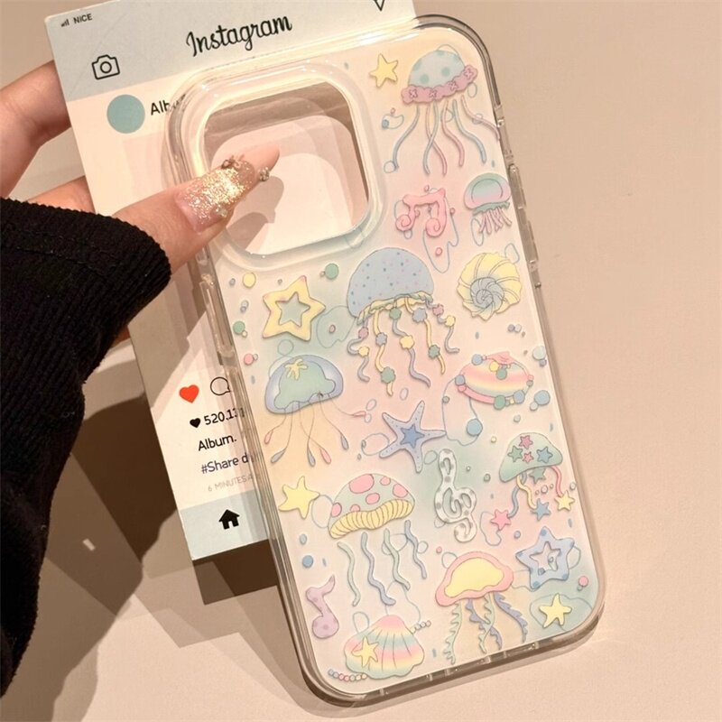 海洋动物水母适用OPPORENO15手机壳OPPOReno14/1312/11/10pro晕染findx9/8/7ultra大孔IMD白底A3Pro套K12X