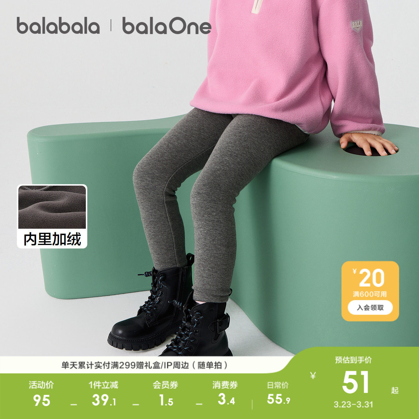 巴拉巴拉童装儿童加绒打底裤女童加厚保暖2026冬装休闲长裤子百搭