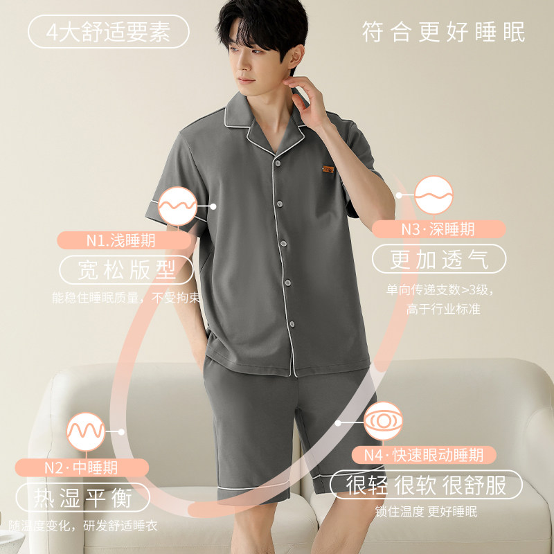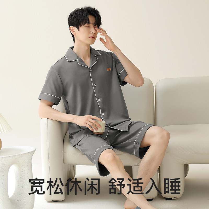 浪莎2025年新款睡衣男士夏季纯棉短袖长裤家居服男款夏天夏款套装