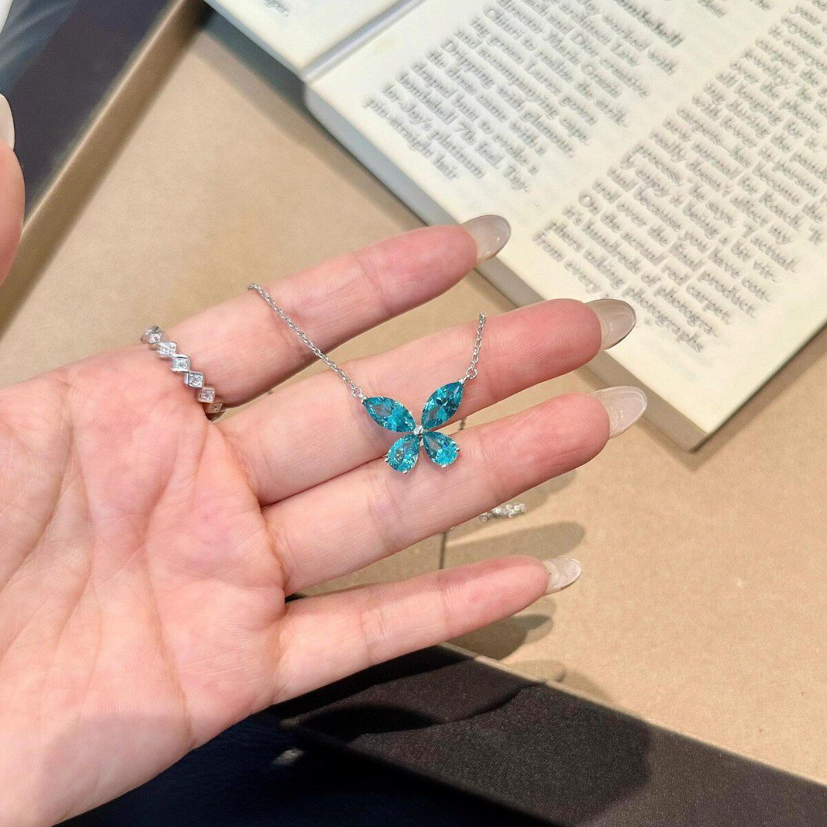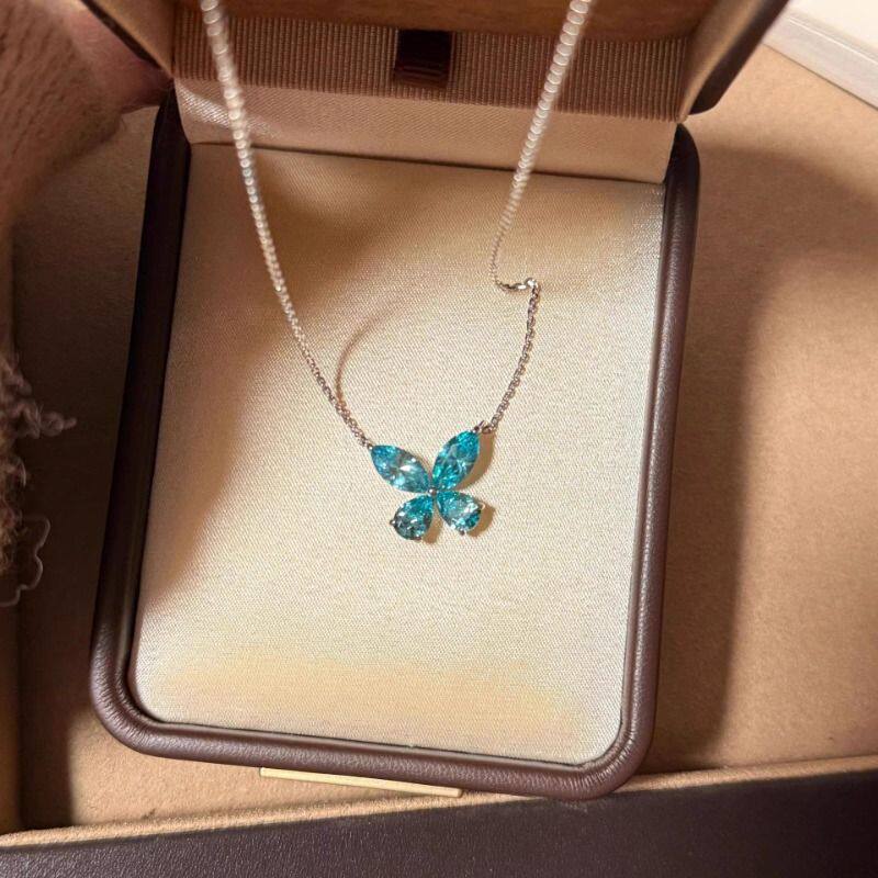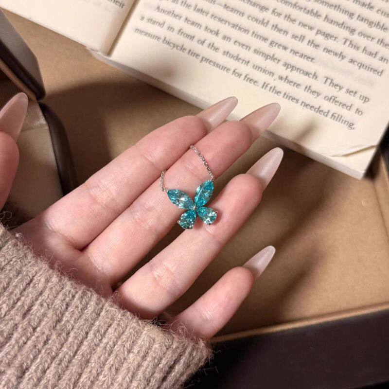 帕拉伊巴闪钻蝴蝶项链小众百搭锆石手镶饰品轻奢气质高级感首饰
