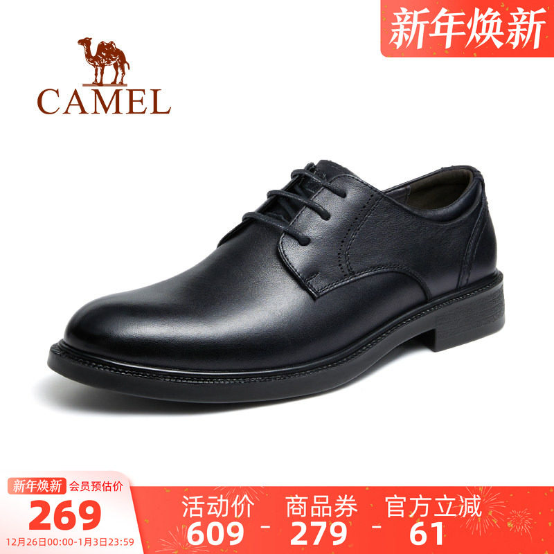 骆驼男士皮鞋2025秋季新款正装商务鞋子真皮内增高结婚新郎德比鞋