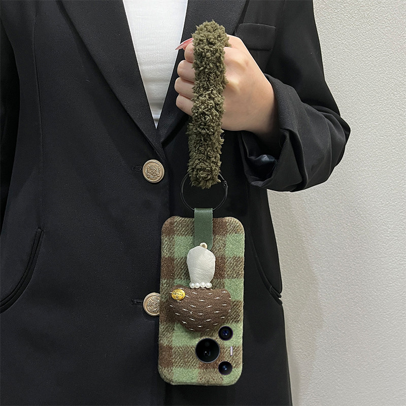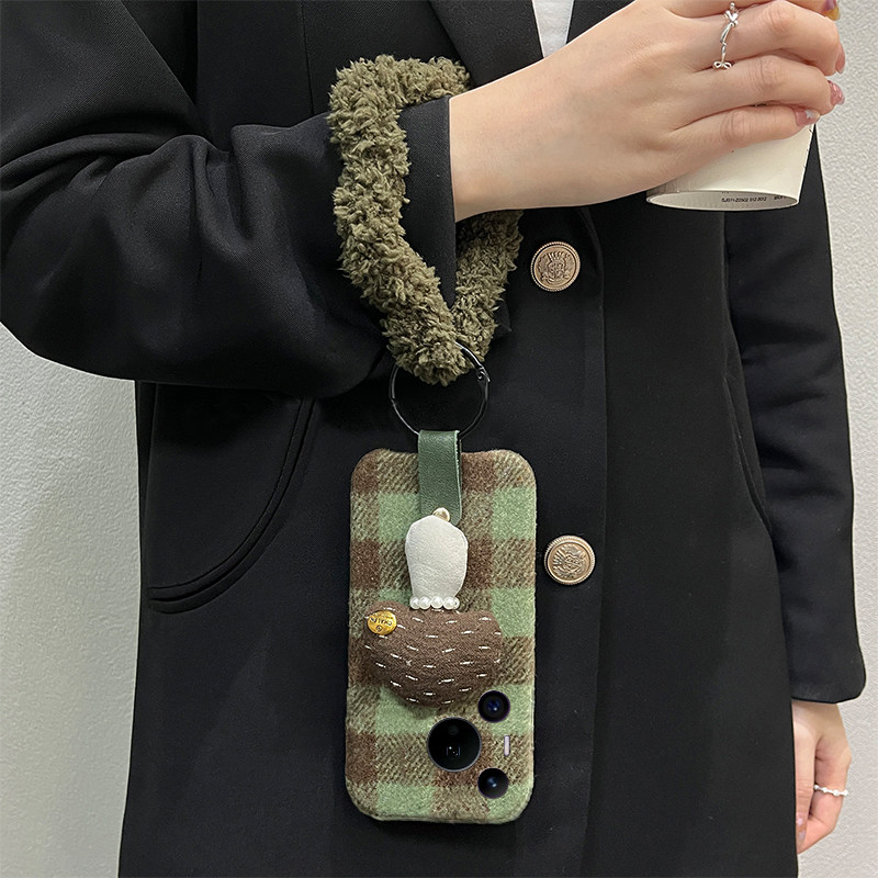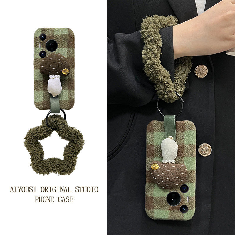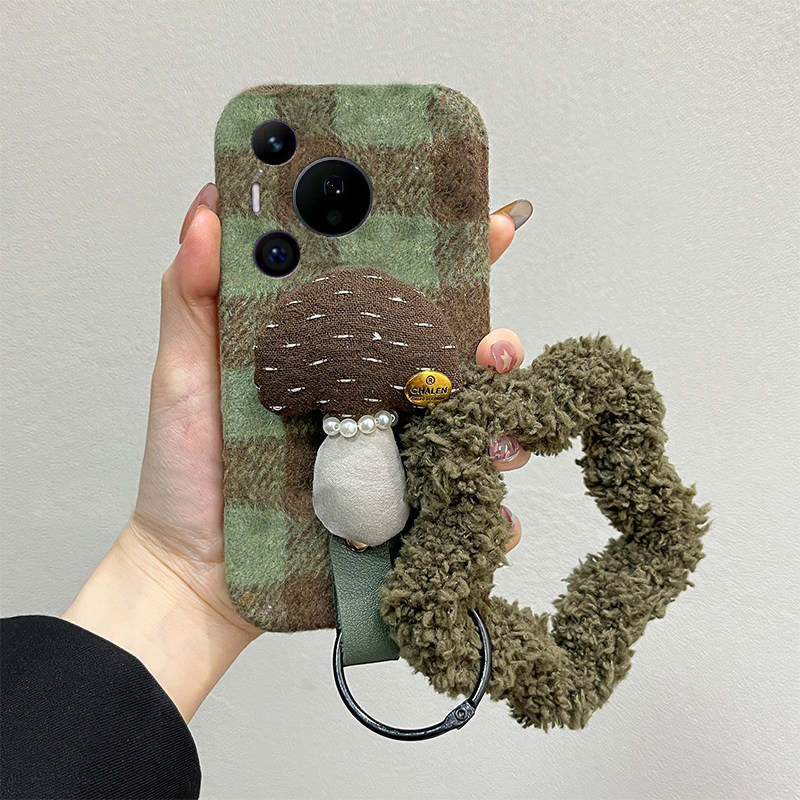 ins风格子蘑菇适用华为pura80pro+手机壳pura70ultra斜挎p60art手环40por+十p30秋冬p20毛绒p10plus可背卡通p