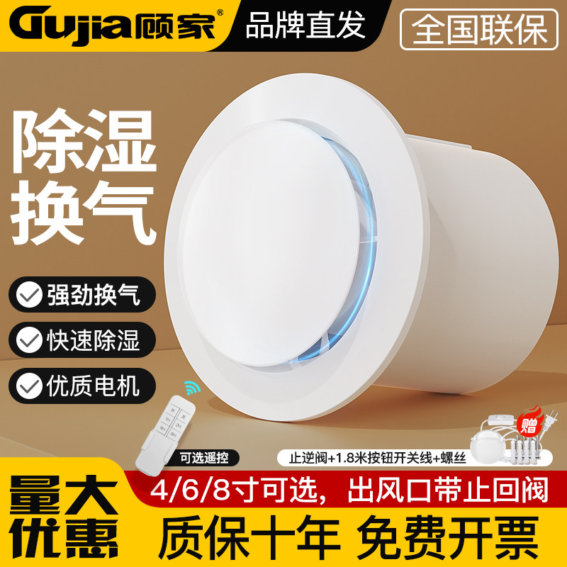 顾家排气扇卫生间换气扇墙壁式浴室厨房抽风机圆形排风扇强力静音