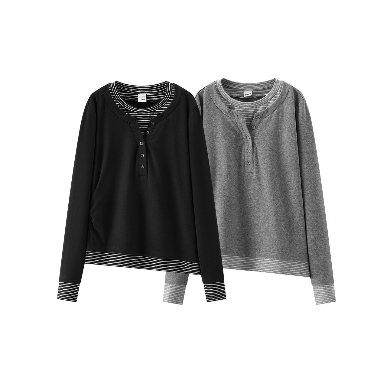 商场同款|森马长袖T恤女冬假两件条纹修身2025新款小心机显瘦上衣