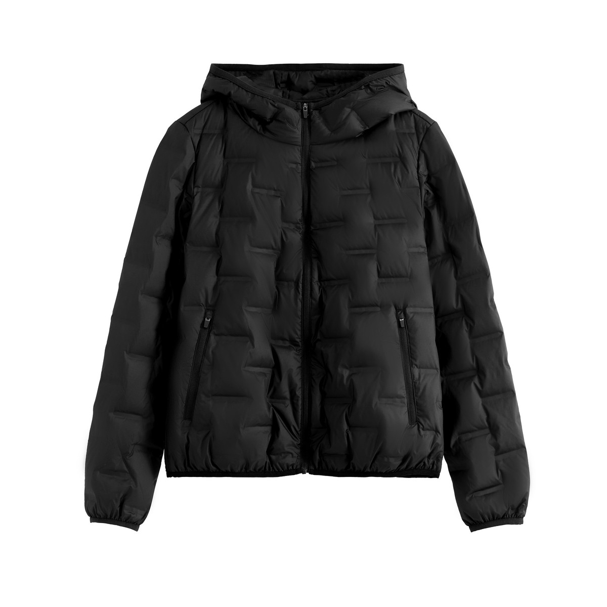 雪中飞2025冬新款女士分格轻薄短款连帽羽绒服简约时尚蓝色优雅