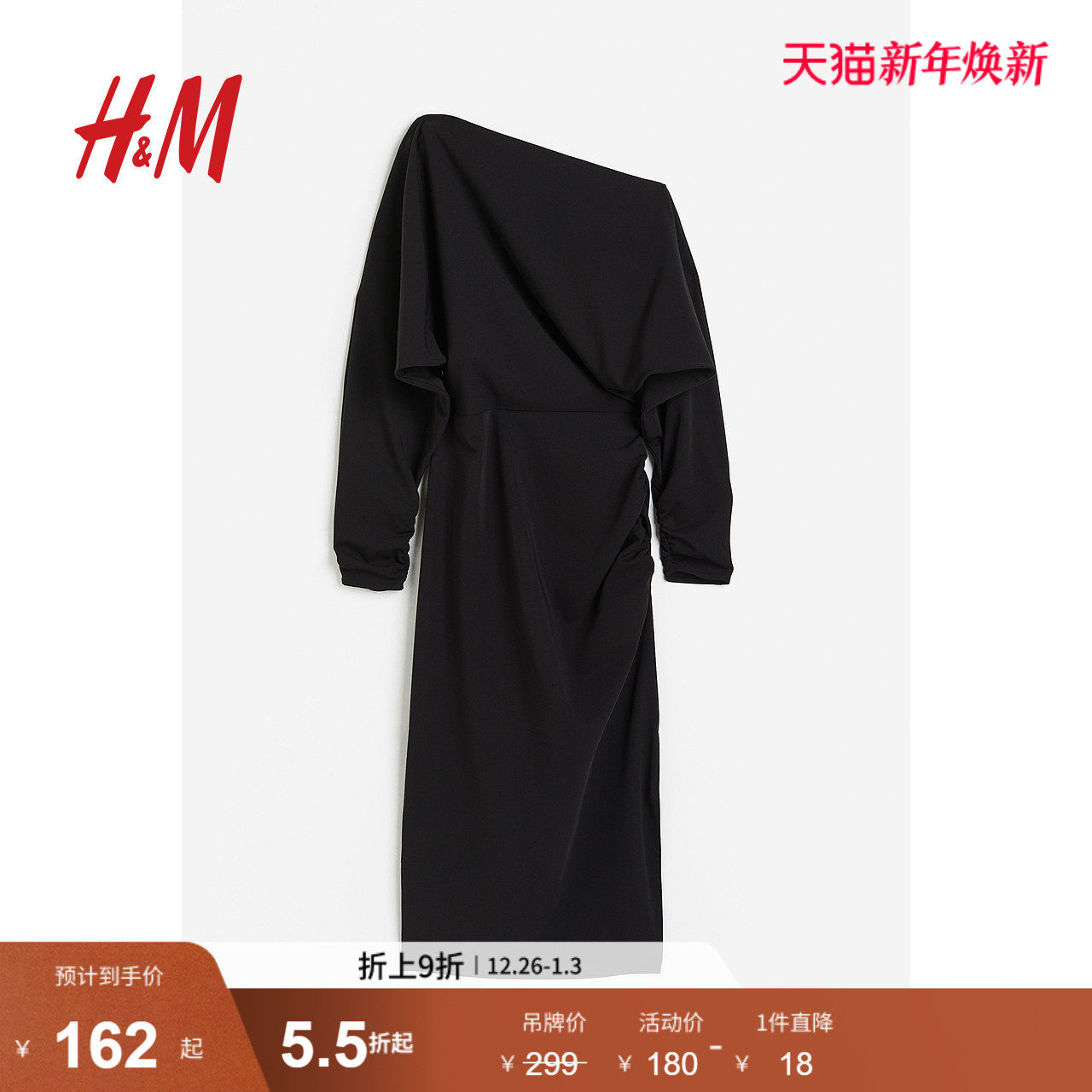HM女装连衣裙秋季时尚气质简约优雅单肩长裙1206607