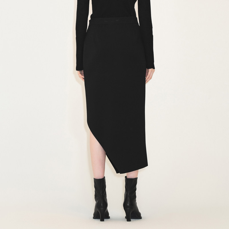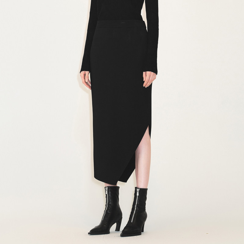 LESS秋冬不对称裙子女气质简约优雅长款针织半身腰裙2M0D12440