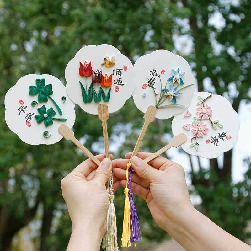 纸艺时代衍纸迷你小团扇初学简单学生团建暖场活动手工DIY礼品