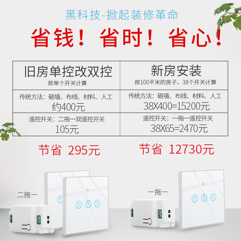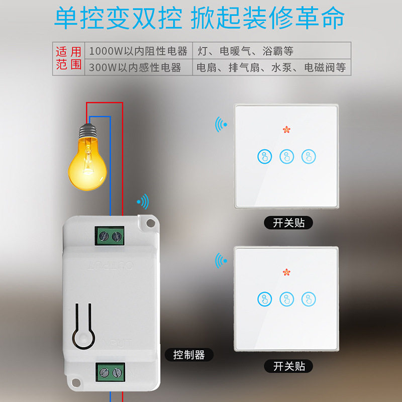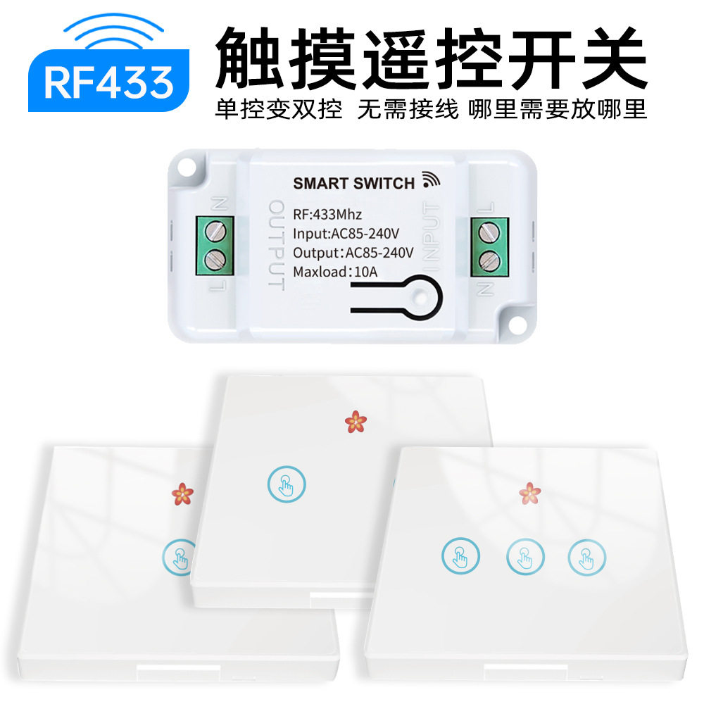 无线遥控触摸免布线遥控开关220v灯控通断器智能家居三开白色