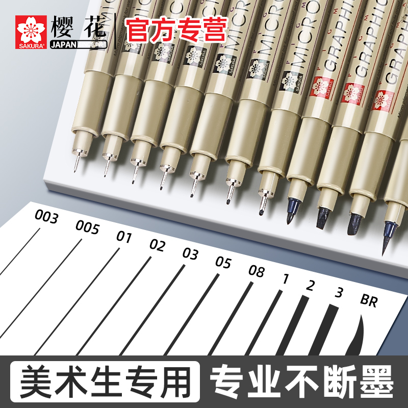 日本樱花勾线笔美术专用针管笔套装学生防水绘图描线笔手绘速写漫画SAKURA牌简笔画专用勾勒动漫马克笔描边笔