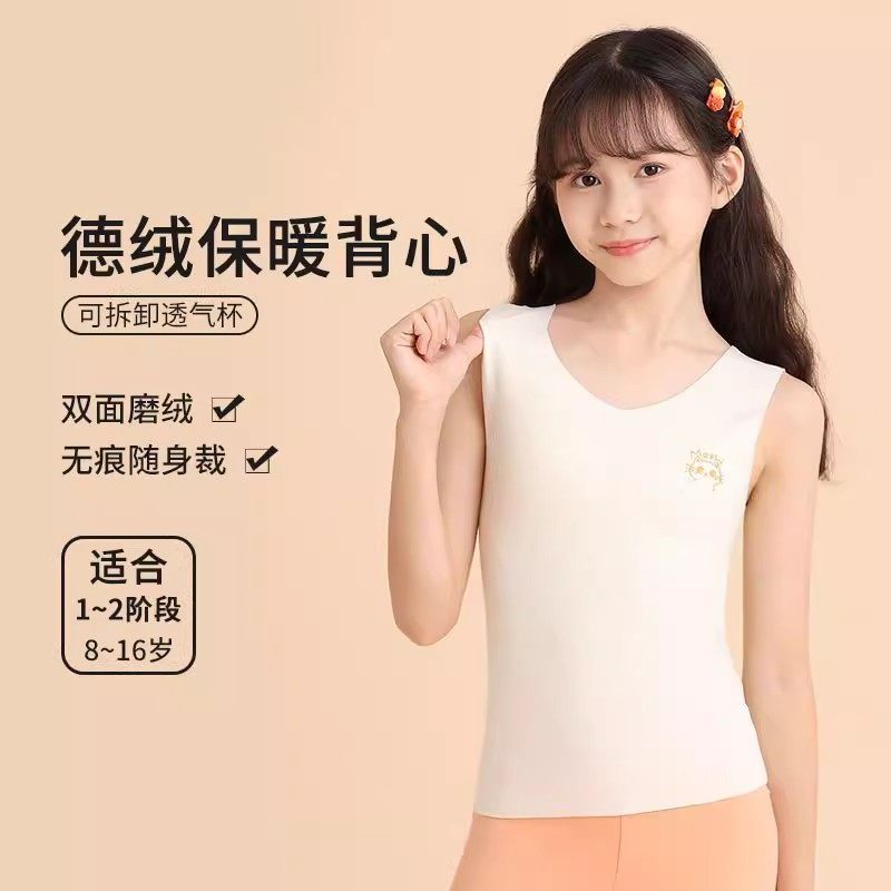 女童内衣发育期小学生背心儿童保暖蚕丝护肚少女阶段内穿秋冬贴身