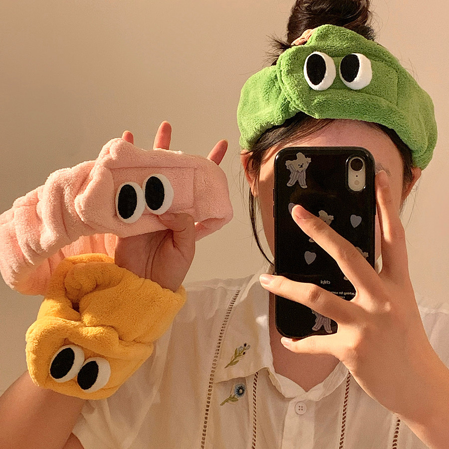 可爱大眼睛洗脸发箍女敷面膜洗漱专用卡通毛绒束发带冬季头箍头饰