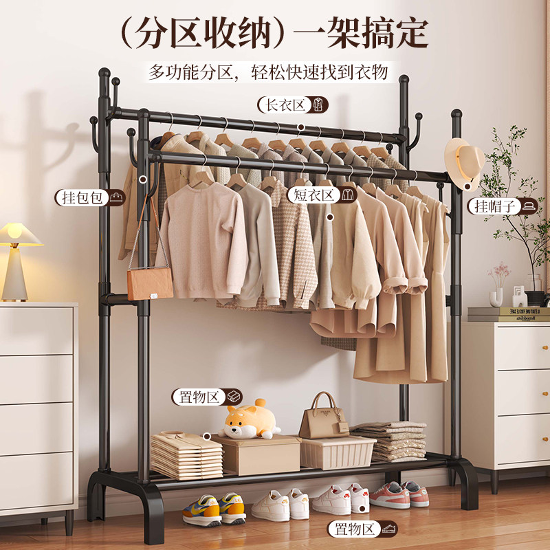 晾衣架落地家用卧室挂衣架宿舍室内双杆双层晒衣服架子简易凉衣杆