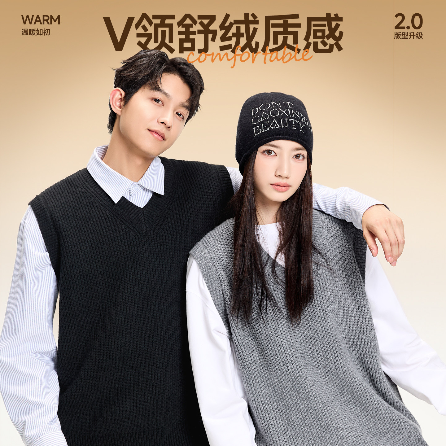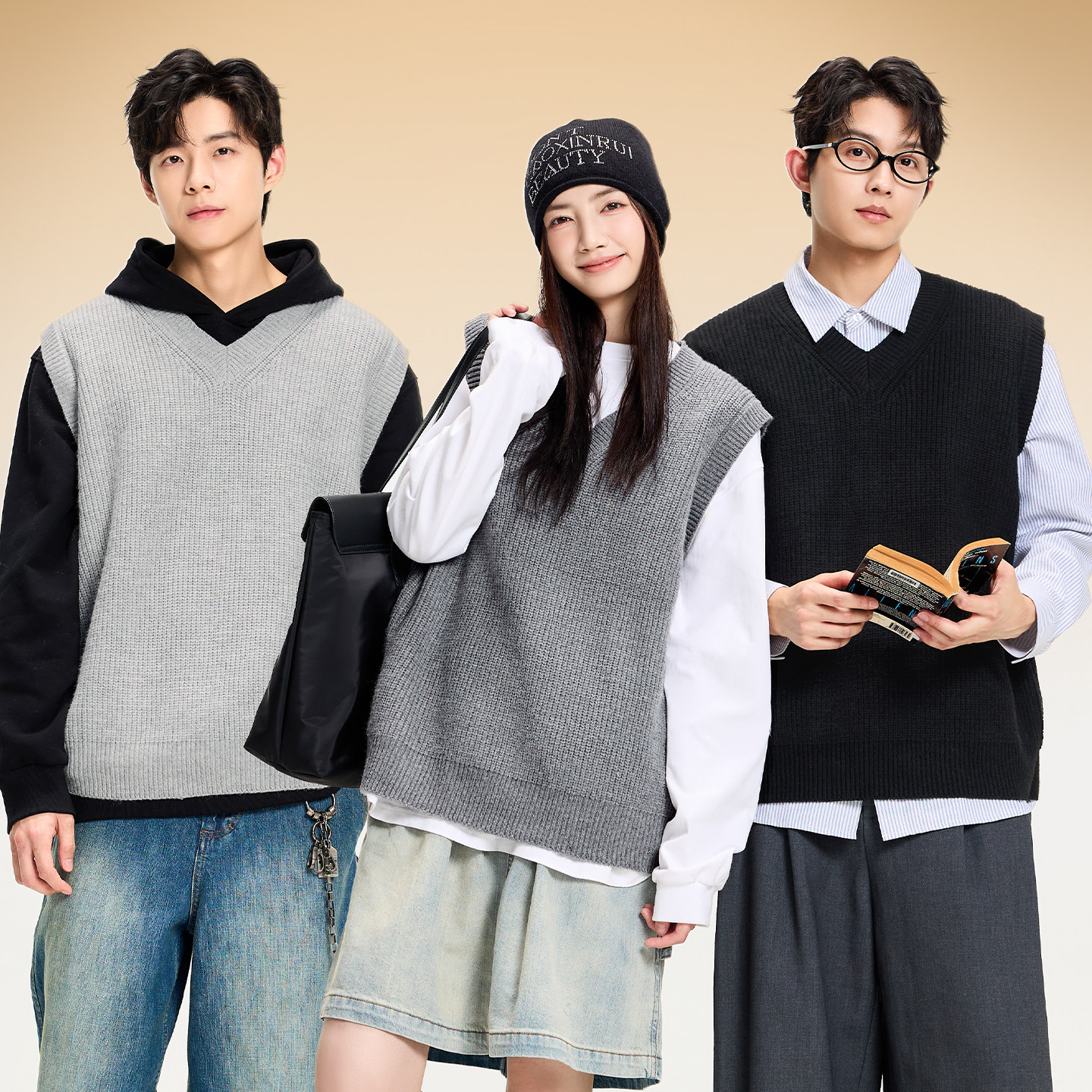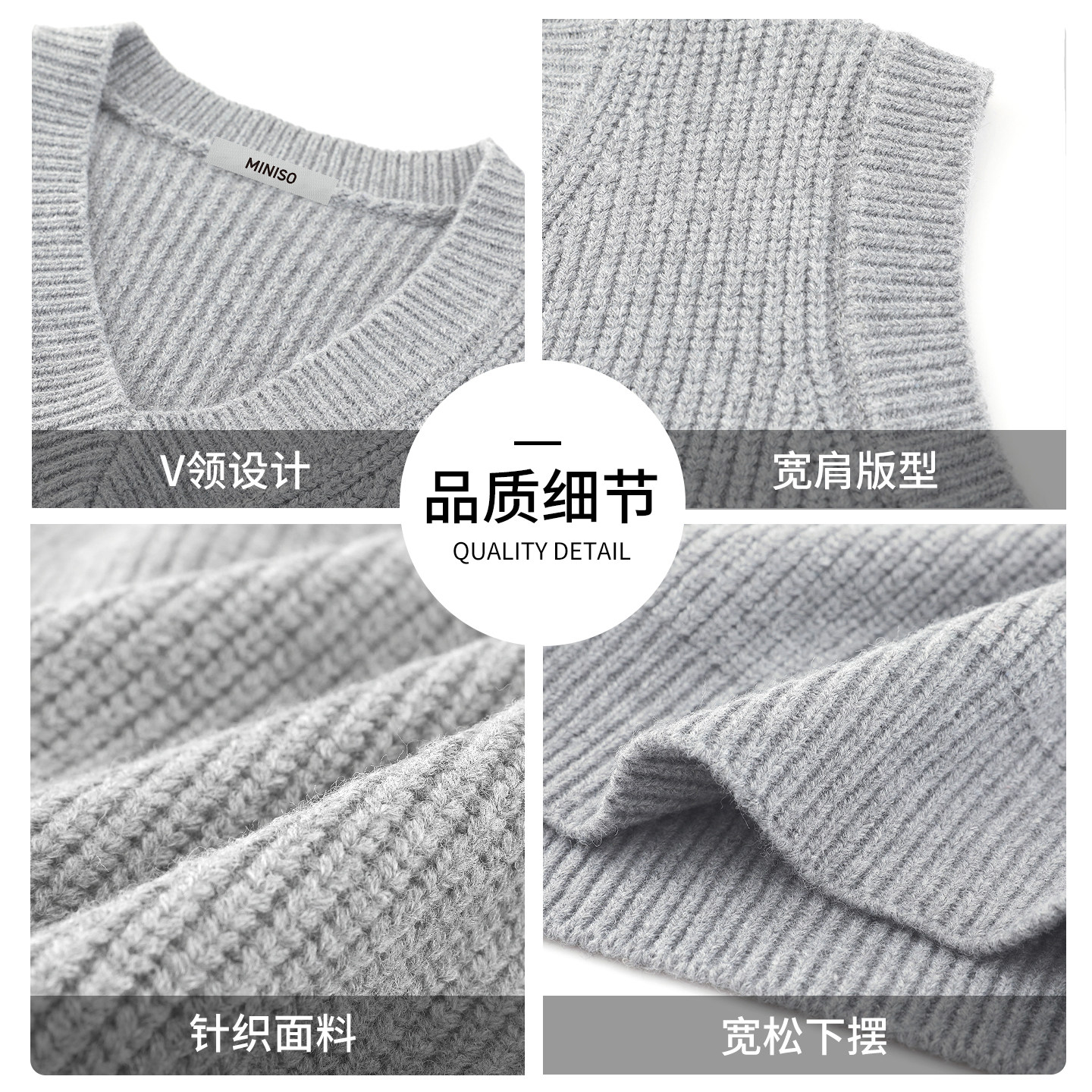 MINISO/名创优品学院风针织马甲毛衣男秋季日系复古V领休闲背心Y