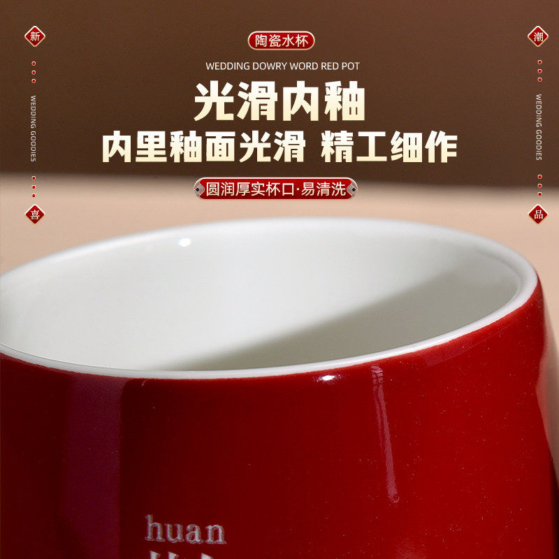 结婚红色陶瓷水杯新娘新郎喝水情侣对杯陪嫁牙杯一对实用杯子礼物