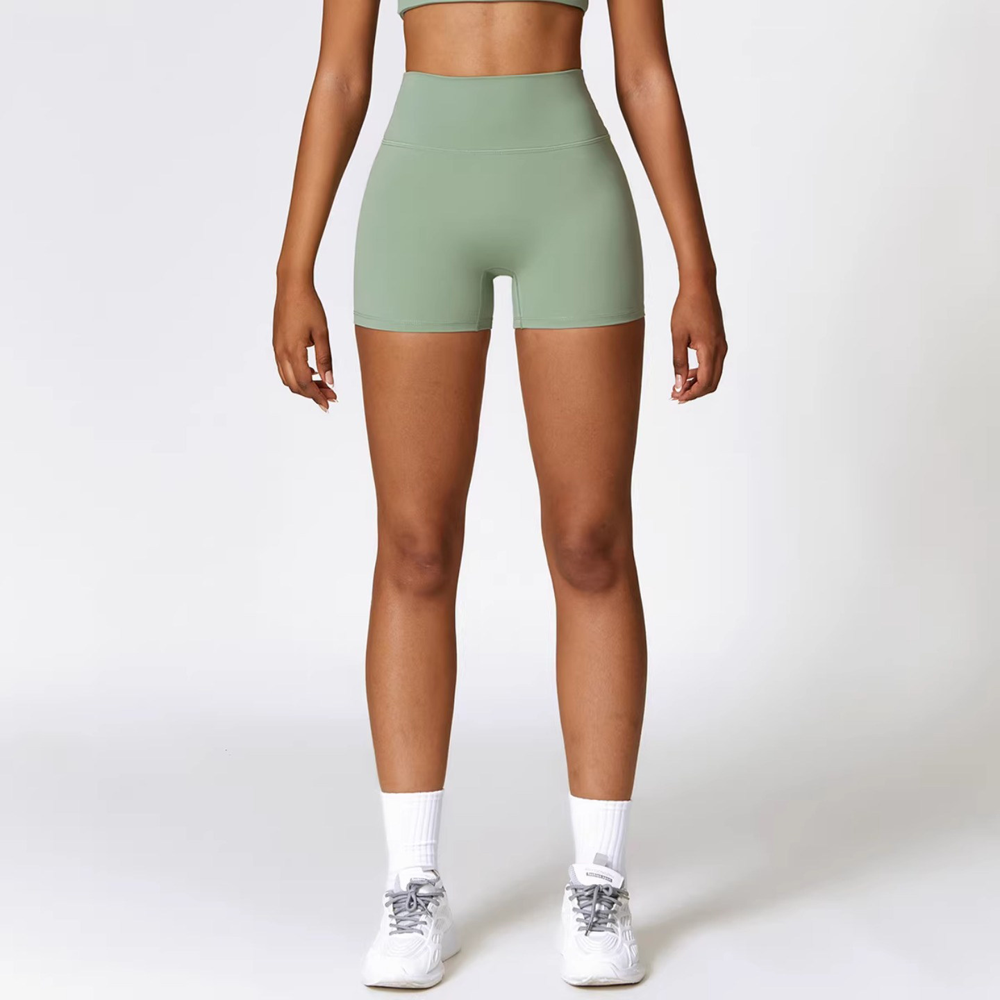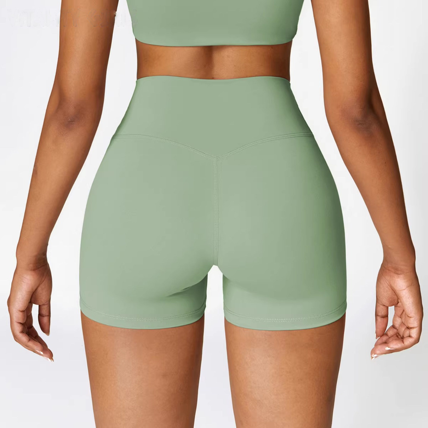欧美蜜桃提臀运动短裤女速干瑜伽服紧身三分裤高腰健身绿色黑色