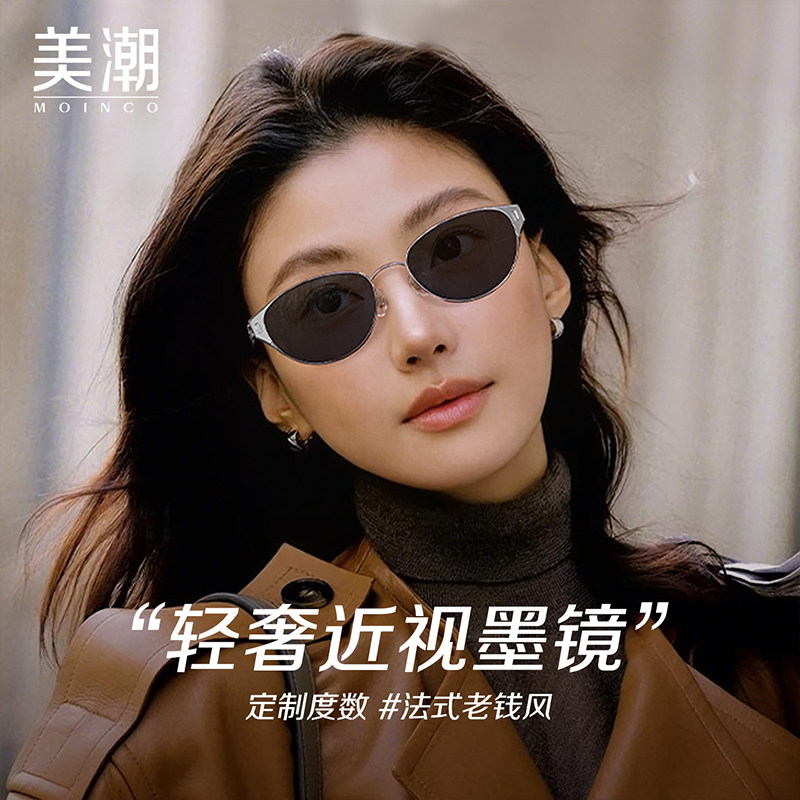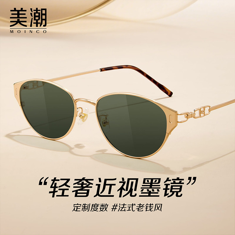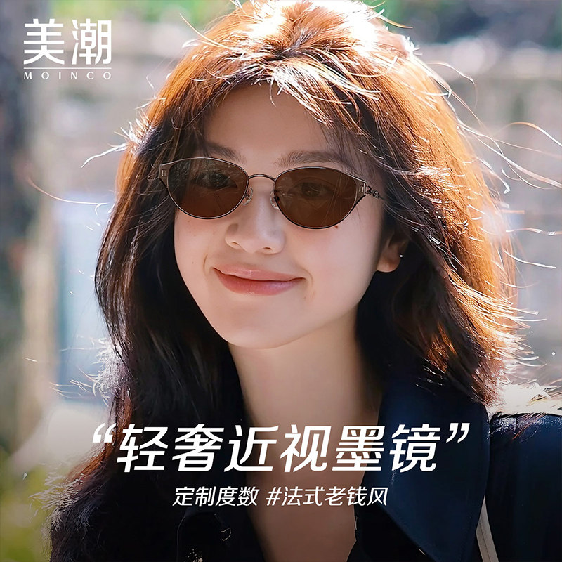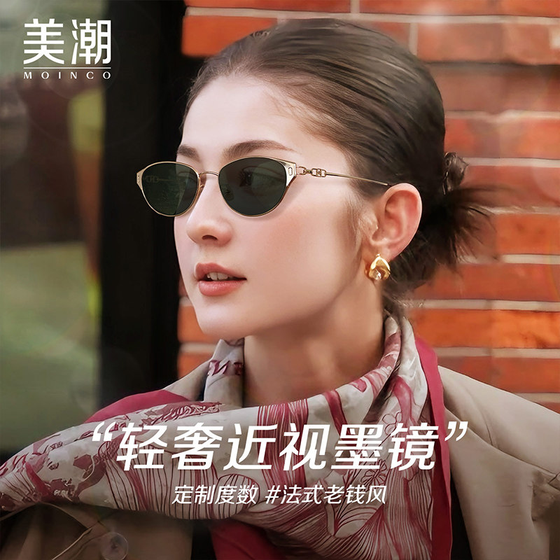 复古猫眼框近视墨镜女金属老钱风高级感轻奢防晒太阳眼镜可配度数