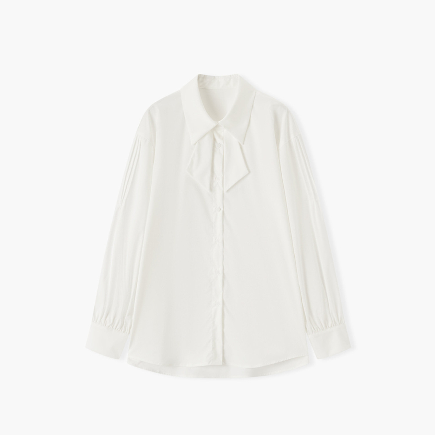 COCOBELLA名媛风手工压褶木耳边雪纺衬衫气质通勤飘带衬衣SR7062