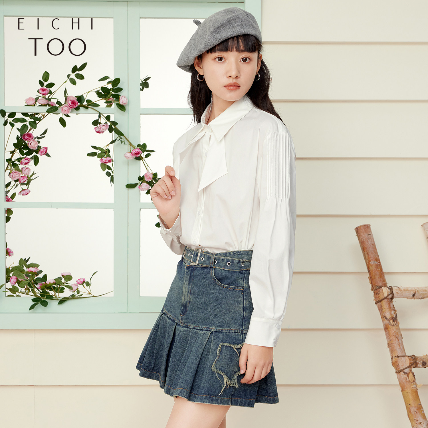 森马长袖衬衫女大翻领雪纺衬衣短背心俏皮可爱春季宽松两件套气质
