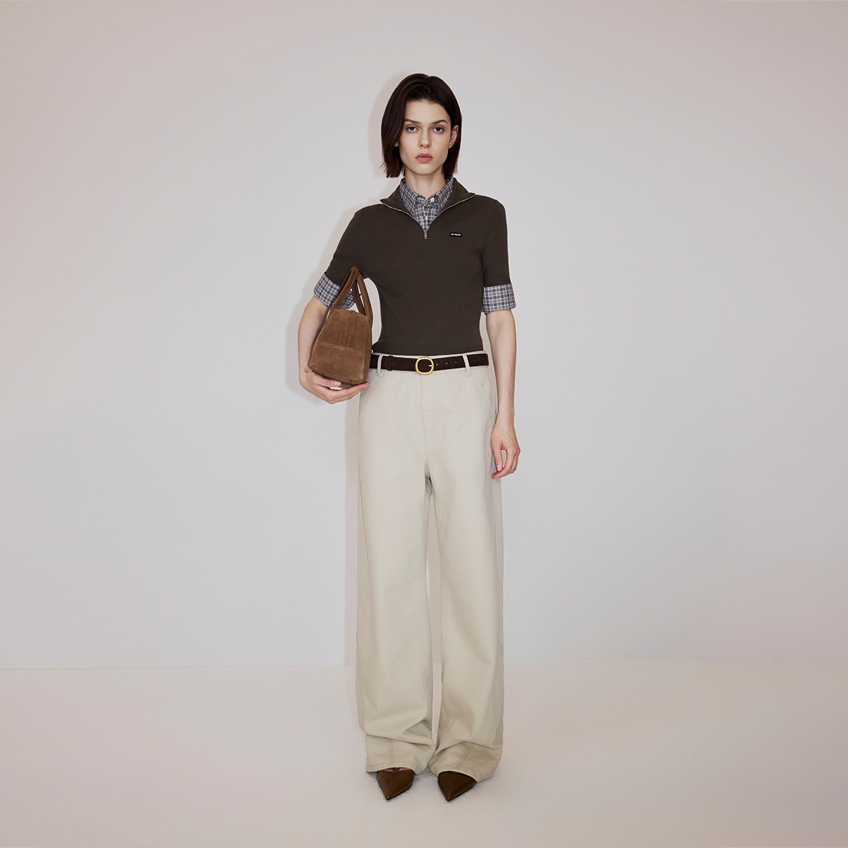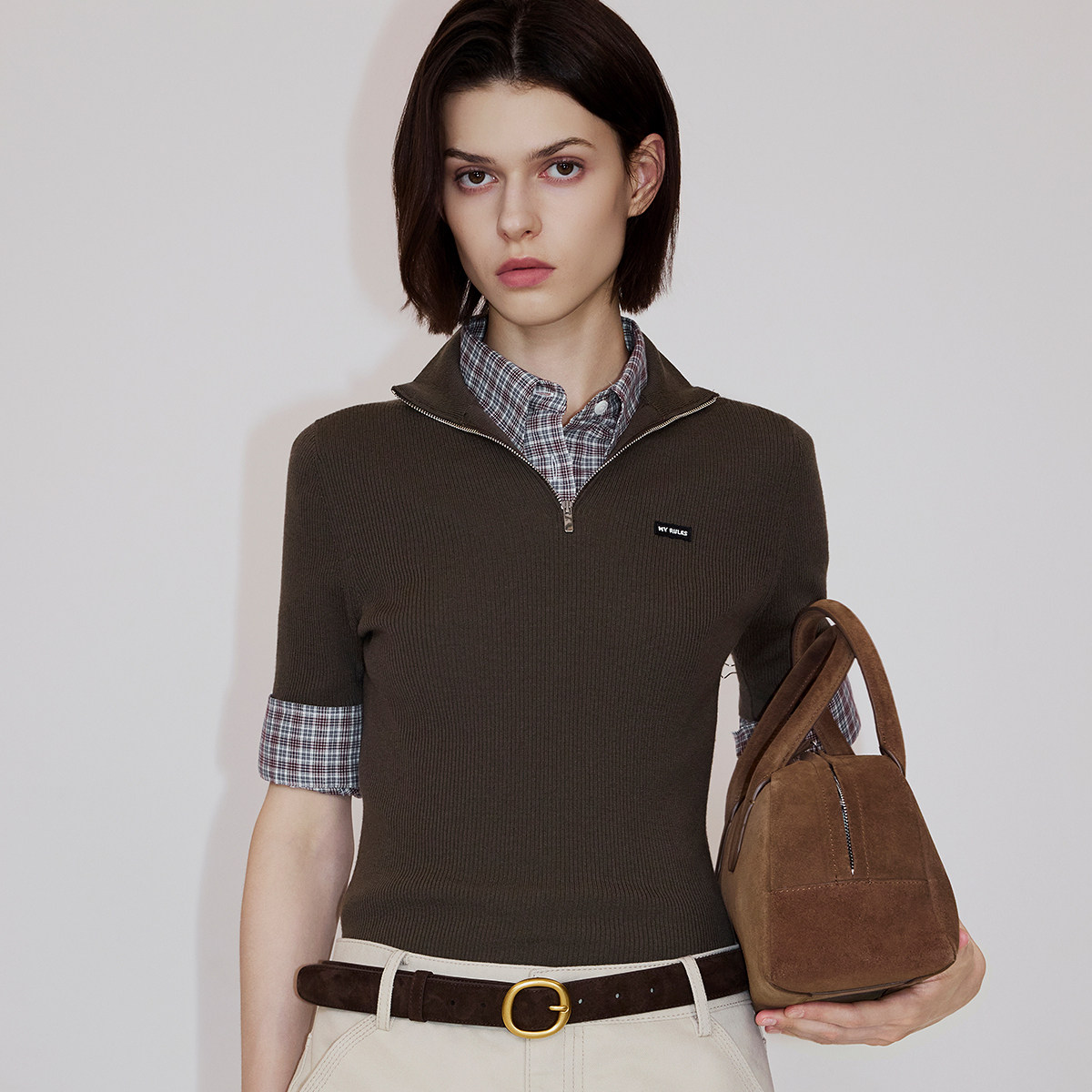 【新品】OCHIRLY欧时力 针织2026春夏清爽美丽诺羊毛拉链短袖上衣