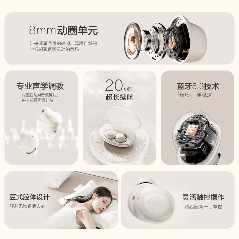 [新色奶杏仁]倍思BS2 lite蓝牙耳机2026无线半入耳适用于小米苹果