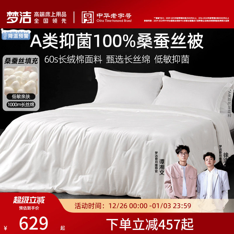 梦洁100桑蚕丝被子被芯二合一子母被春秋被冬被四季通用A类抗菌