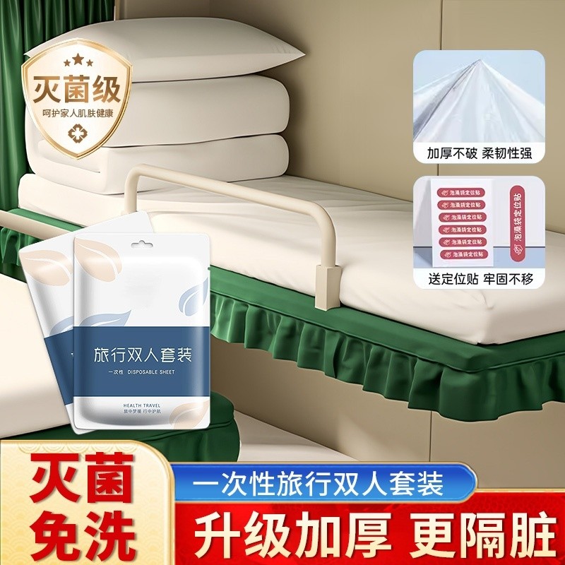 一次性床笠四件套床上床品床单被罩枕套加厚隔脏非纯棉旅行用品
