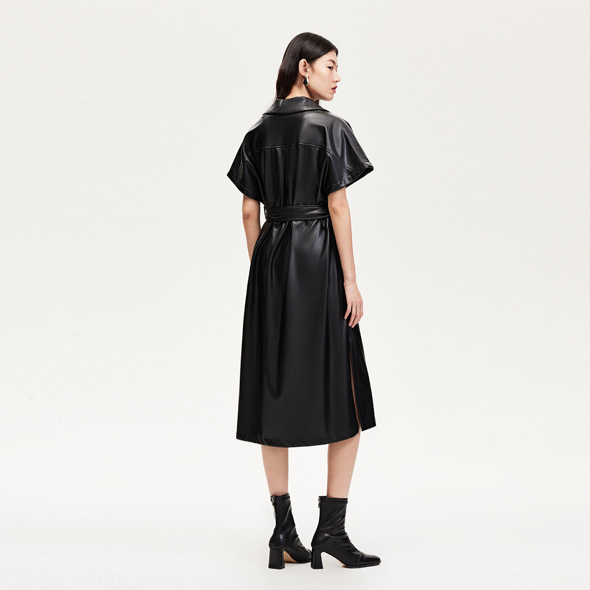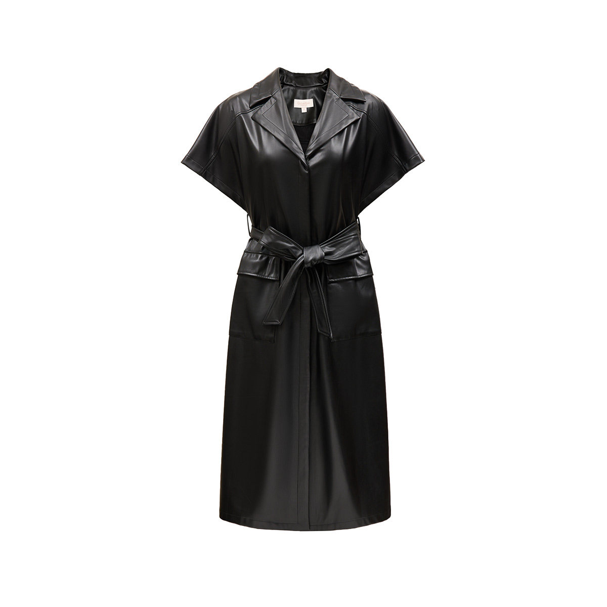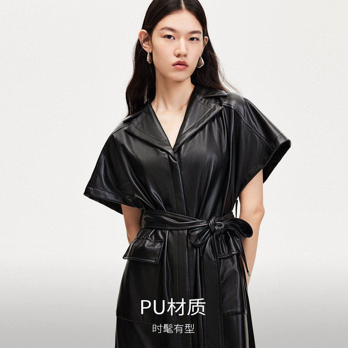 Vero Moda奥莱连衣裙秋冬新款系带PU仿皮长裙个性翻领街头风短袖
