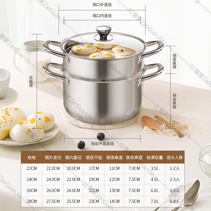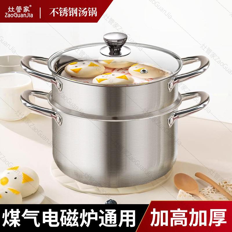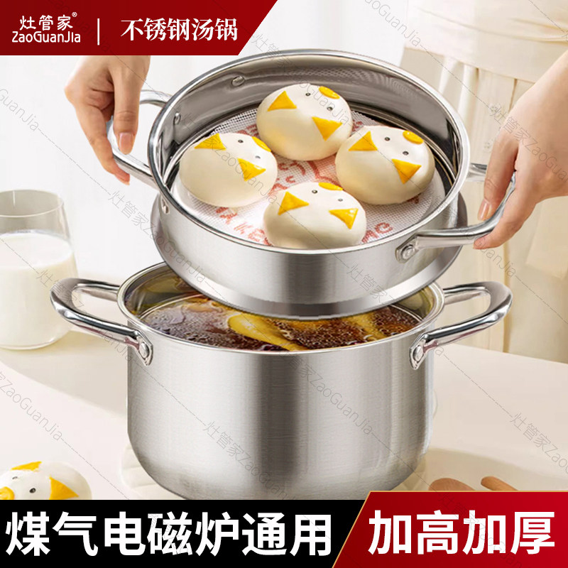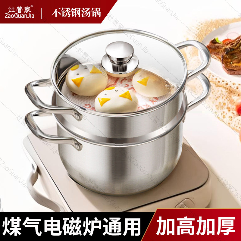 灶管家汤锅加厚不锈钢家用双耳带蒸笼煮粥煲汤熬粥电磁炉燃气通用