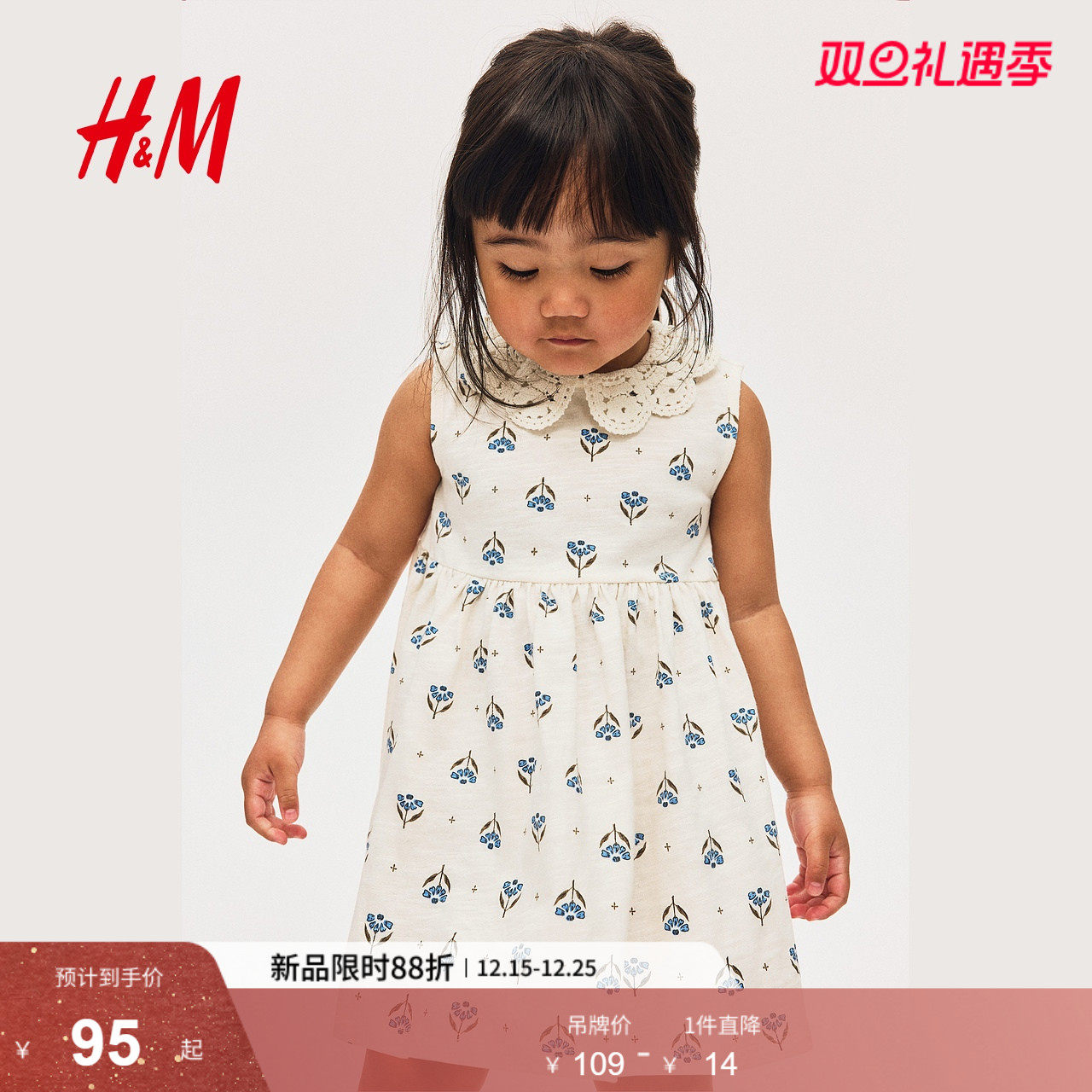 HM童装女婴裙子2025冬季新款印花有领无袖连衣裙公主裙1293598