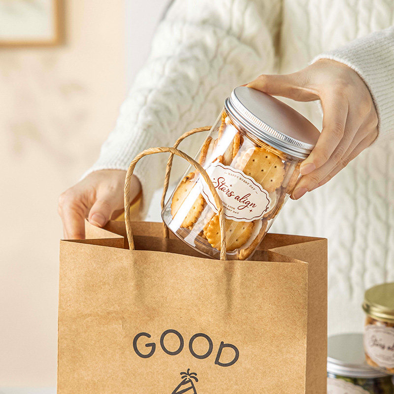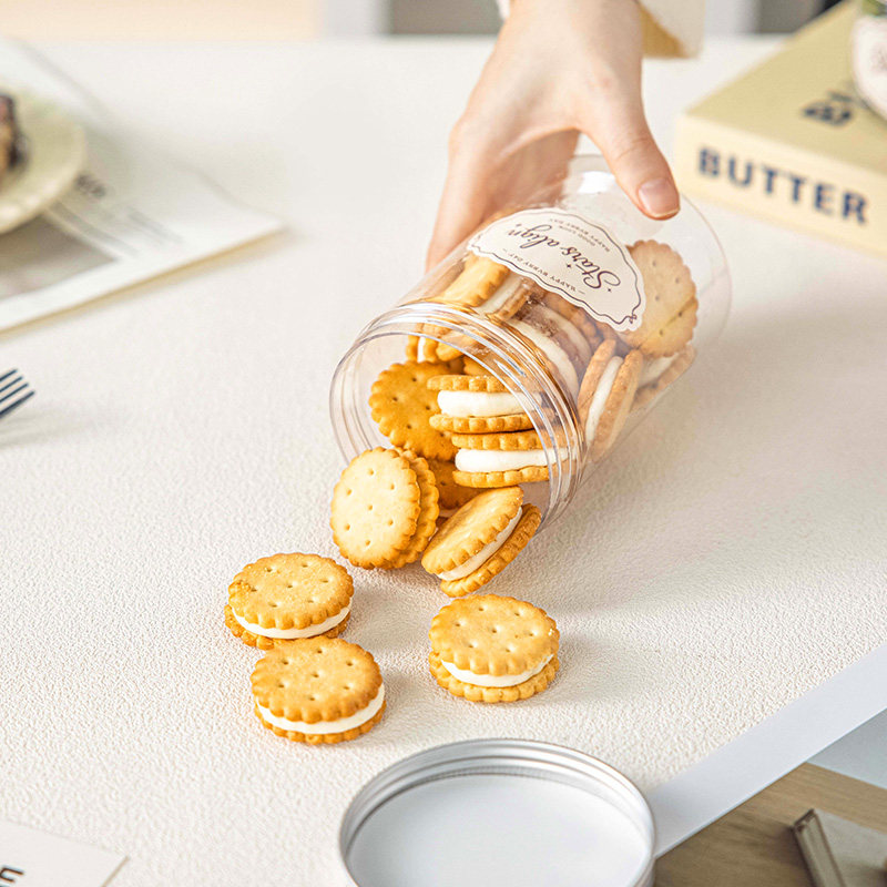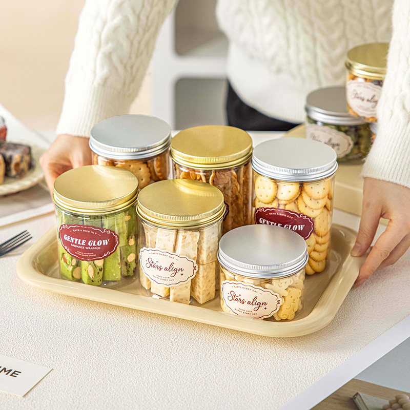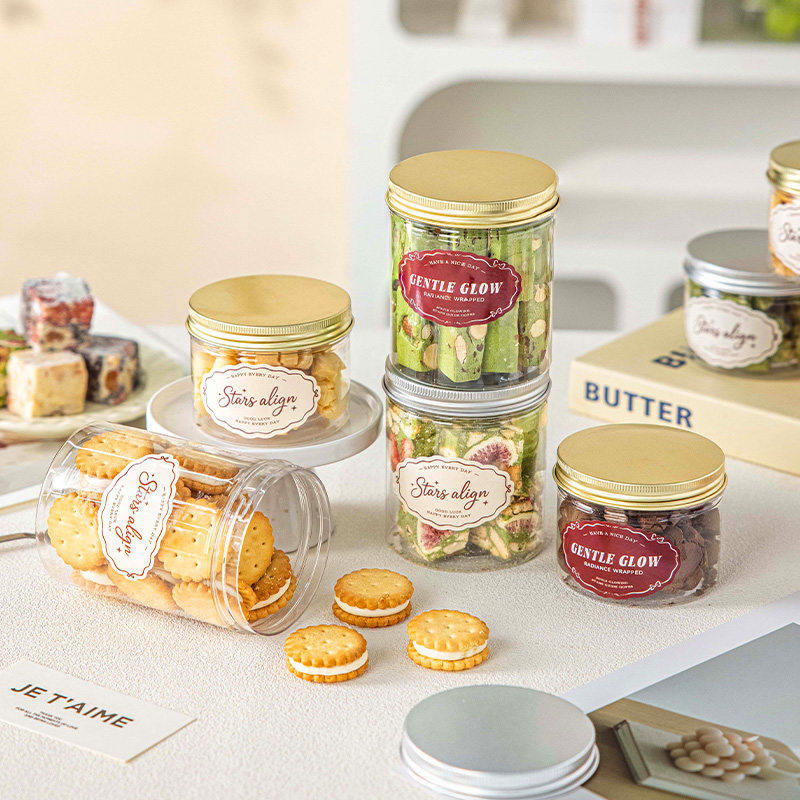 透明圆形饼干密封罐PET食品级收纳瓶曲奇雪花酥牛轧糖专用空塑料