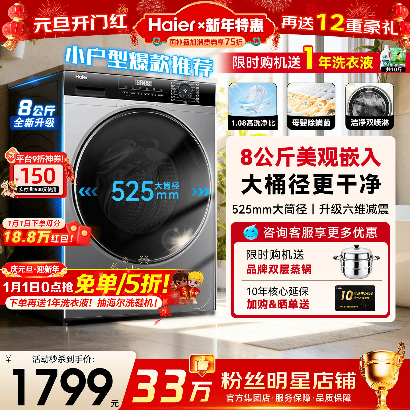 海尔超薄滚筒洗衣机40cm纤薄家用8/10公斤全自动滚筒小户型