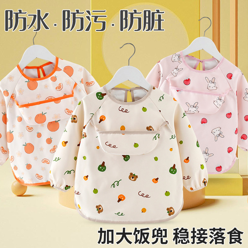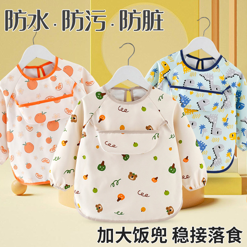 儿童宝宝罩衣吃饭围兜长袖防水反穿护衣婴幼儿园辅食饭兜外穿薄款