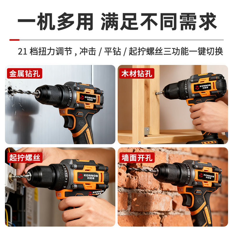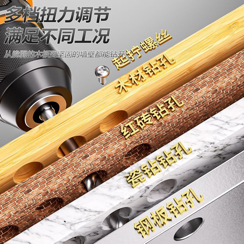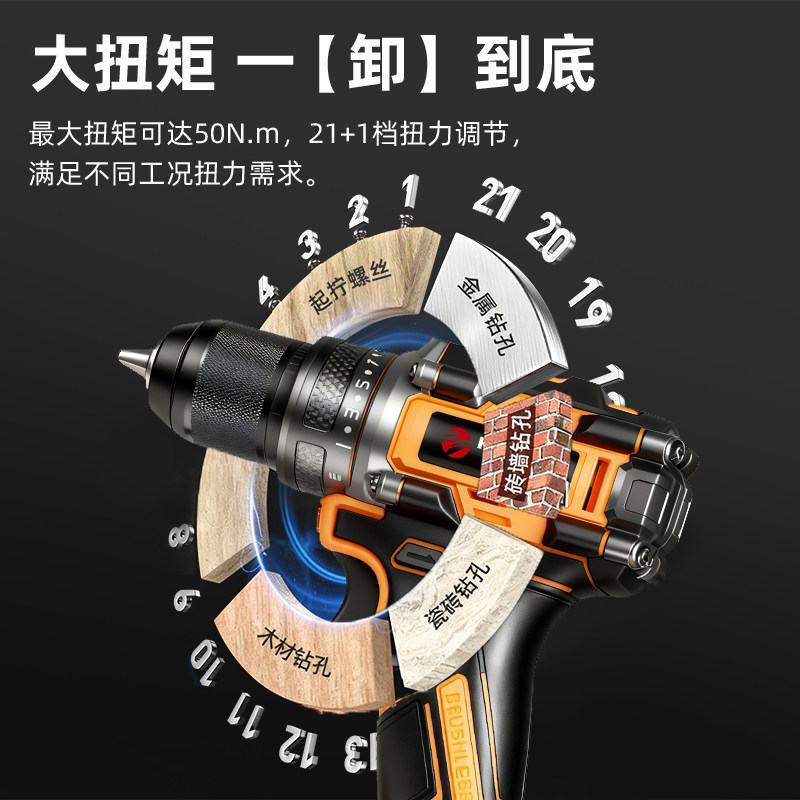 无刷大扭力锂电手钻三功能冲击手电钻大功率无线充电电转电动工具