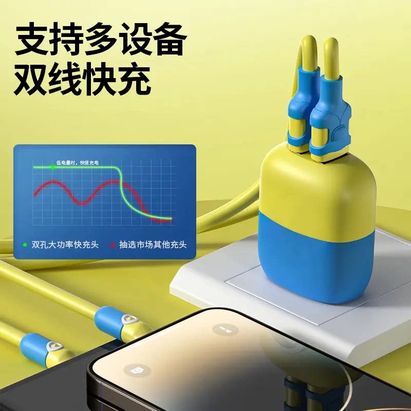 适用苹果充电线快充数据线iPhone14promax13/12/11/xr/5/6/7/8/Xxs充电器头双孔手机