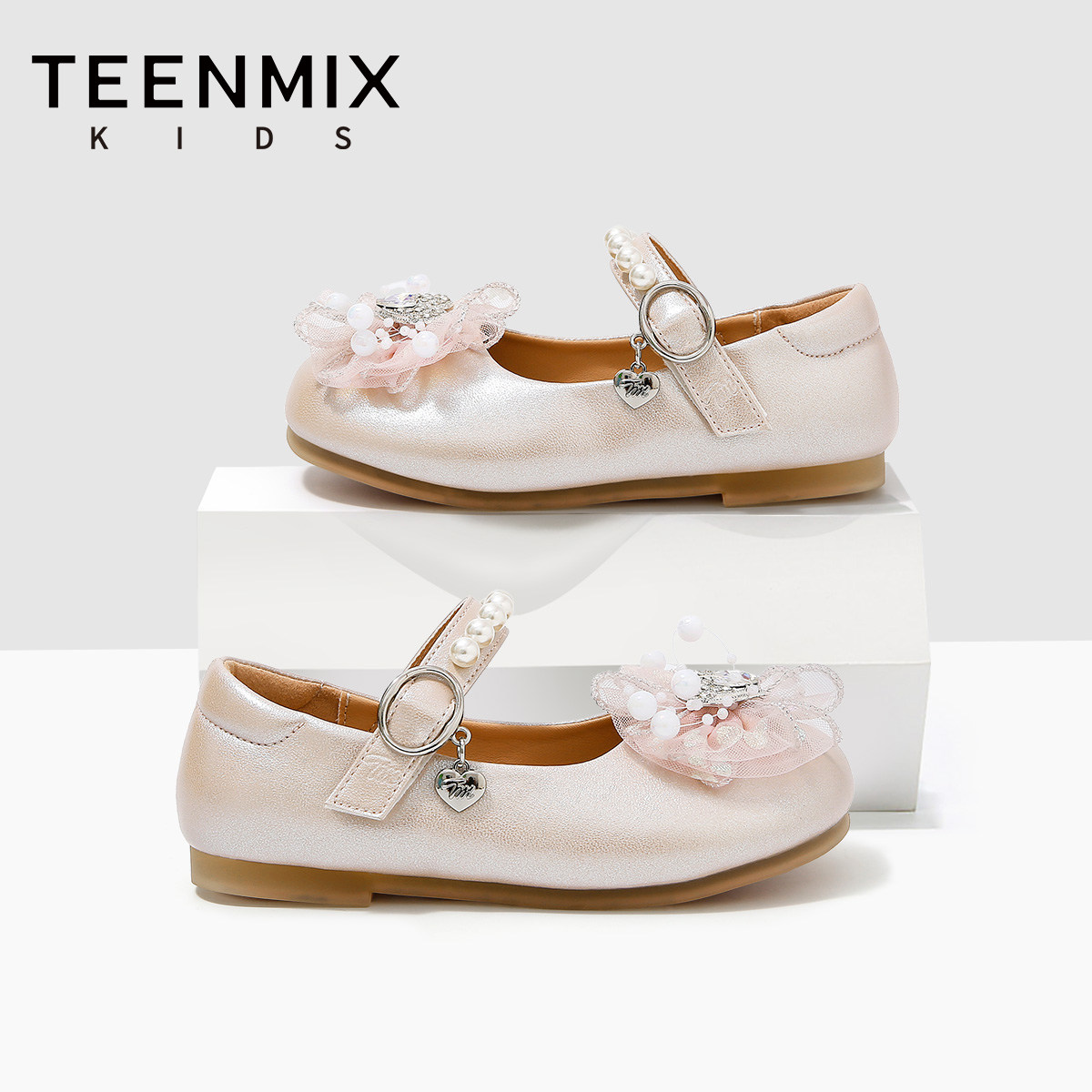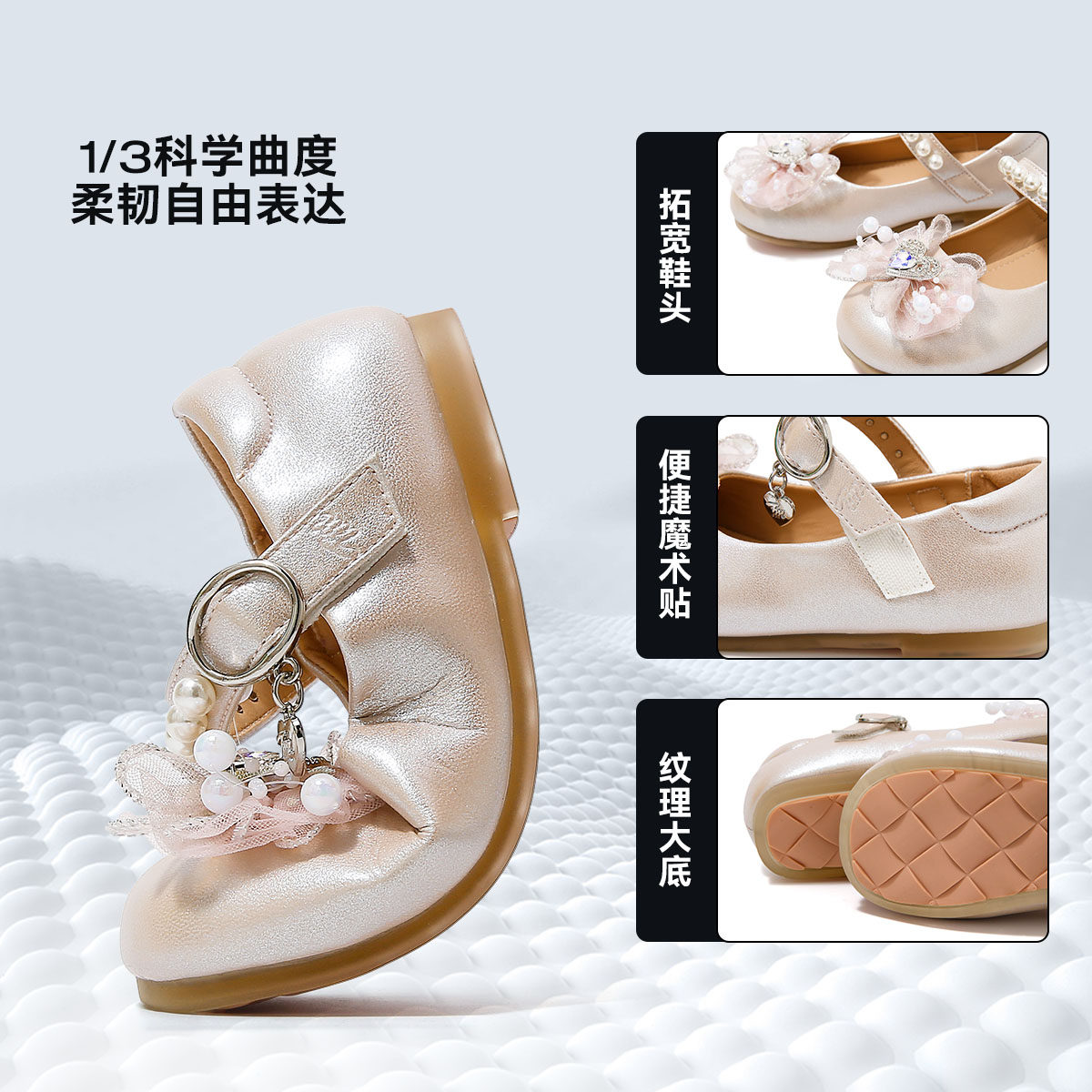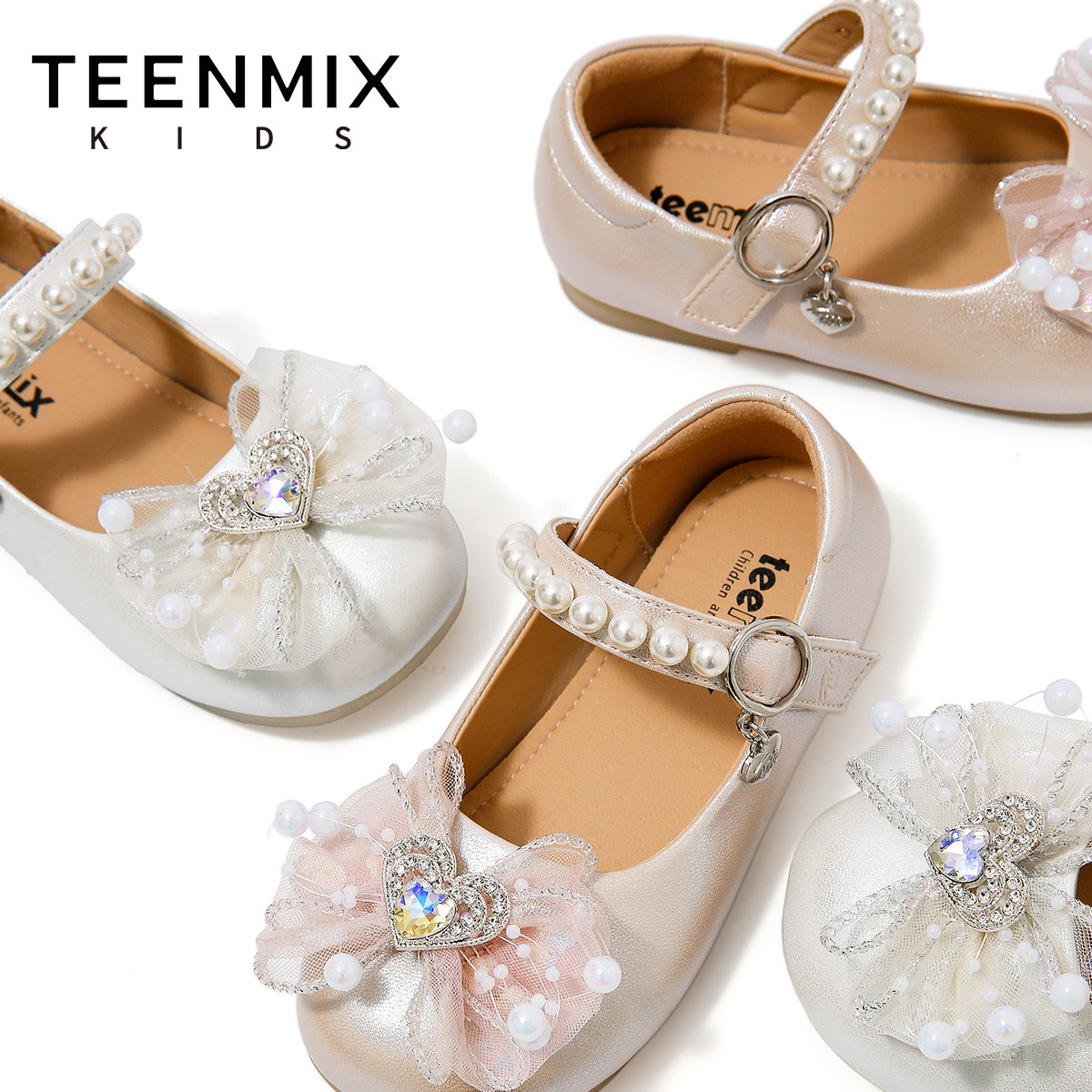 天美意童鞋2026年春秋新款小女孩水晶鞋儿童小皮鞋女童爱莎公主鞋
