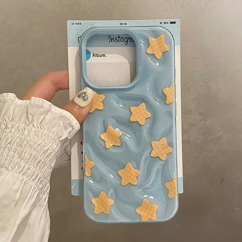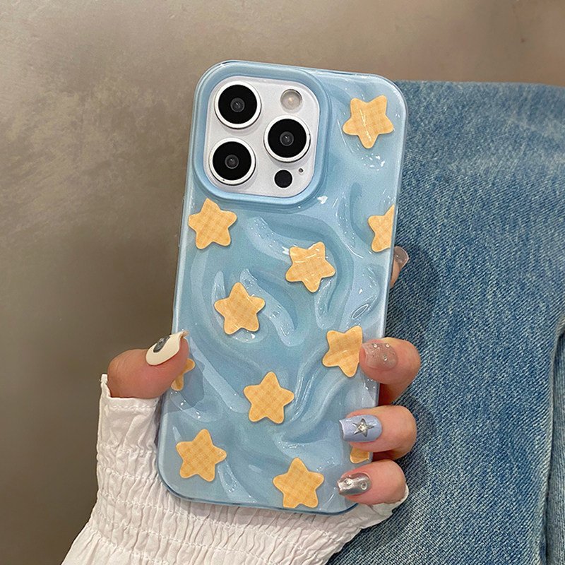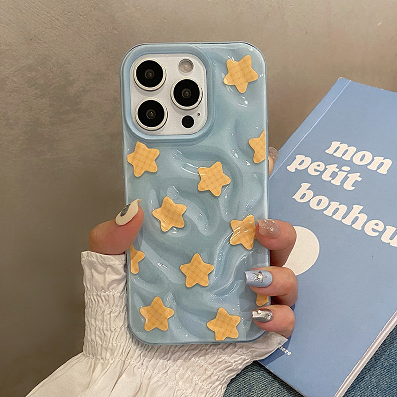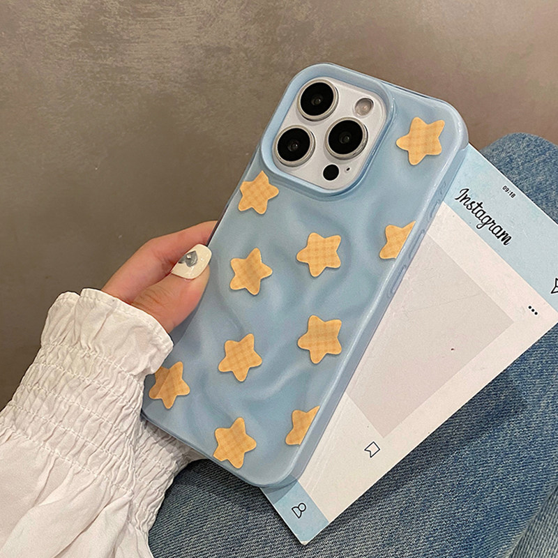 日韩ins风褶皱蓝底黄色星星适用于苹果16pro手机壳iphone15保护套14全包13防摔新款17promax超好看max手机套p