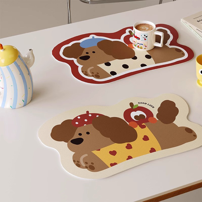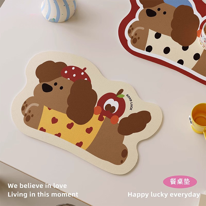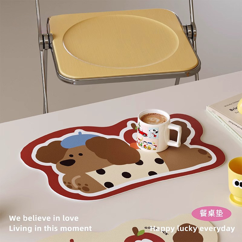 腊肠狗卡通隔热餐垫防水防油免洗咖啡台垫皮革桌面垫杯垫餐桌狗狗