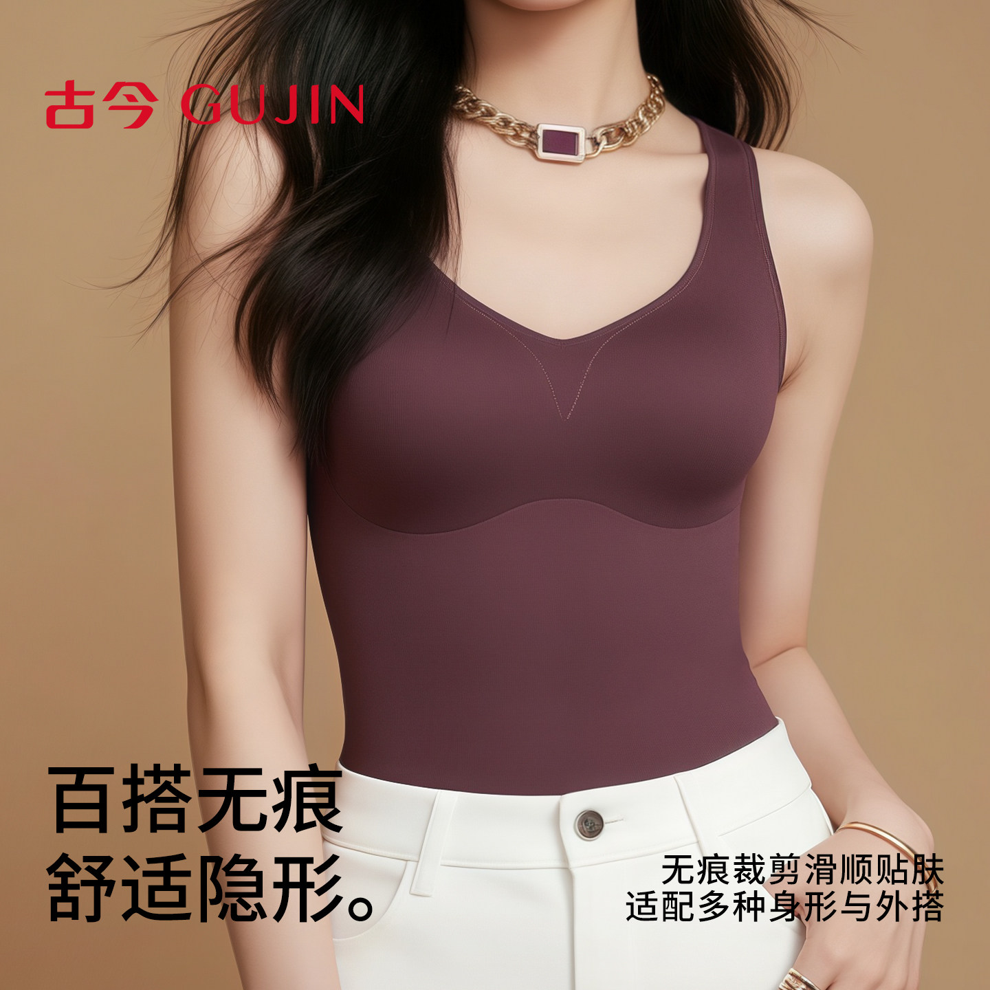 古今内衣柔软舒适保暖背心女纯色基础打底秋冬免穿文胸