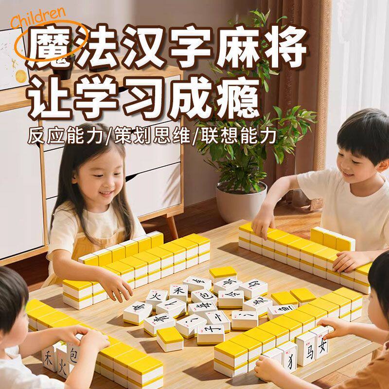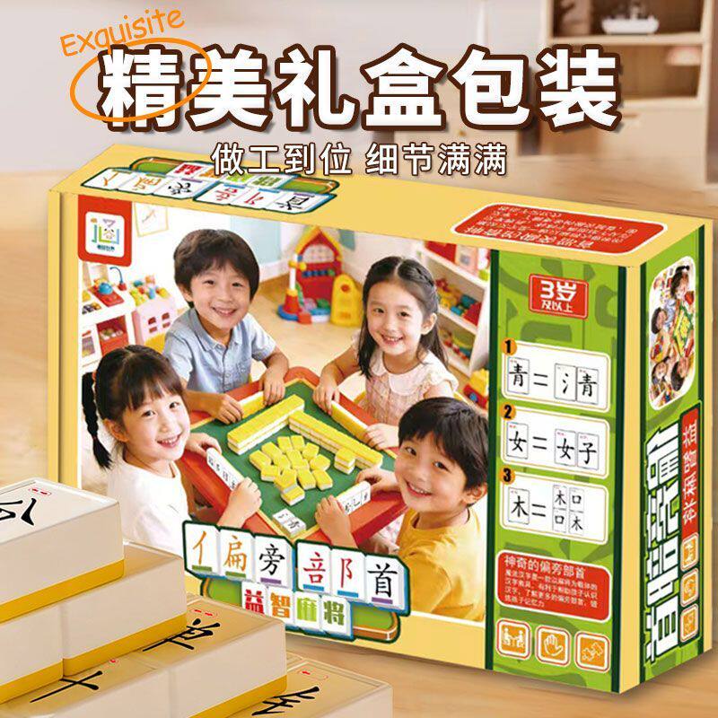 汉文字拼字词麻将牌小学生偏旁部首亲子互动儿童益智区识字卡玩具边玩边学习汉字思维益智开发桌游阅读专营店读书神奇