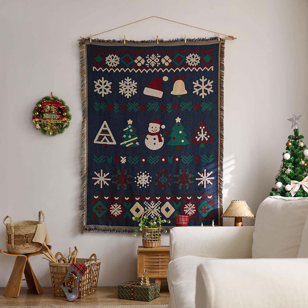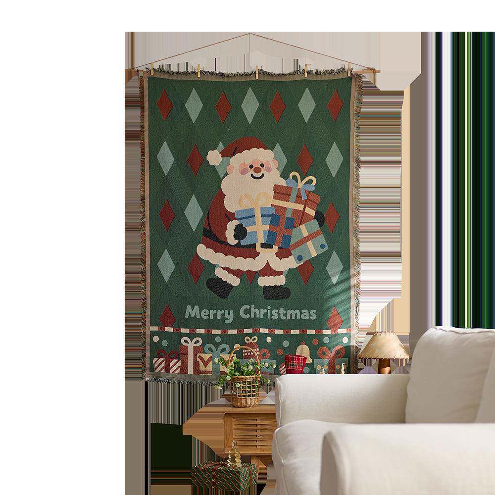 圣诞节挂毯房间布置墙面装饰背景布棉纱线毯沙发巾盖毯露营毯挂布