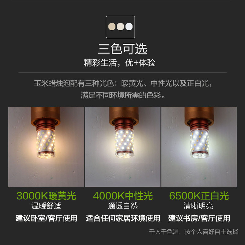 巨祥灯饰led长条灯泡超亮节能灯e27螺口灯条家用三色变光水晶吊灯
