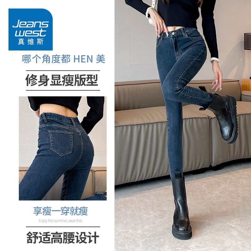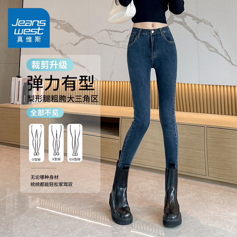KZH真维斯高腰牛仔裤女春秋新款修身显瘦铅笔裤复古弹力小脚长裤