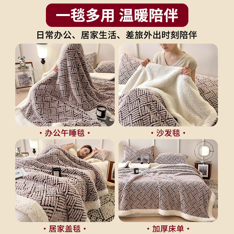 双面加绒加厚毛毯沙发盖毯办公室午睡毯披肩午休秋冬毯子2025新款