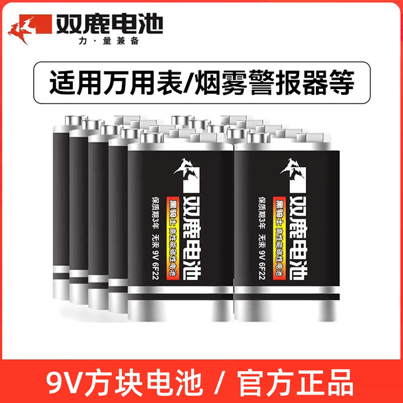双鹿9v电池方块电池6F22方形碳性电池万用表音响玩具麦克风遥控器体温枪9v叠层电池6lr61九伏电池