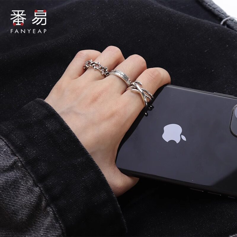 戒指/嘻哈A1pl700-简约复古小众设计做旧时尚个性男潮开口食指