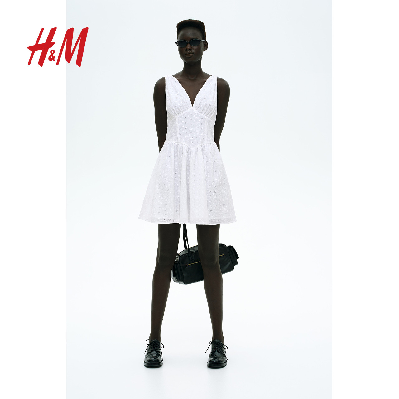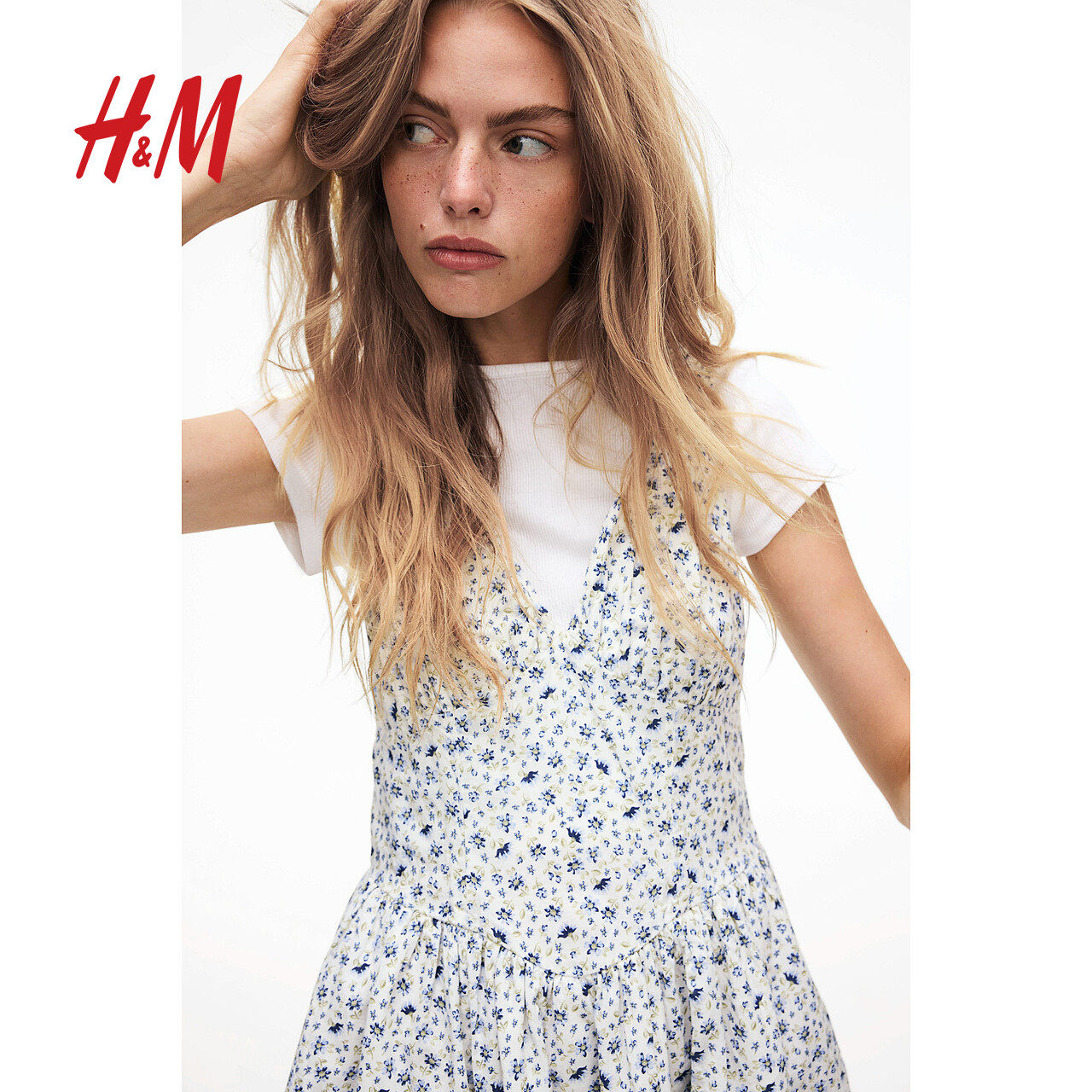 HM女装连衣裙春季小碎花连衣裙法式褶皱收腰设计感碎花裙1269440